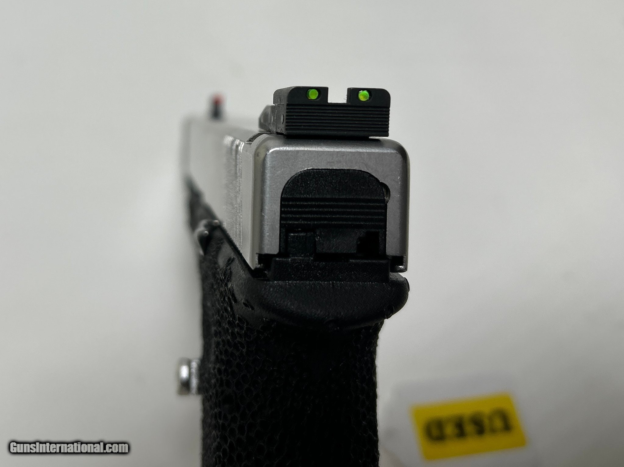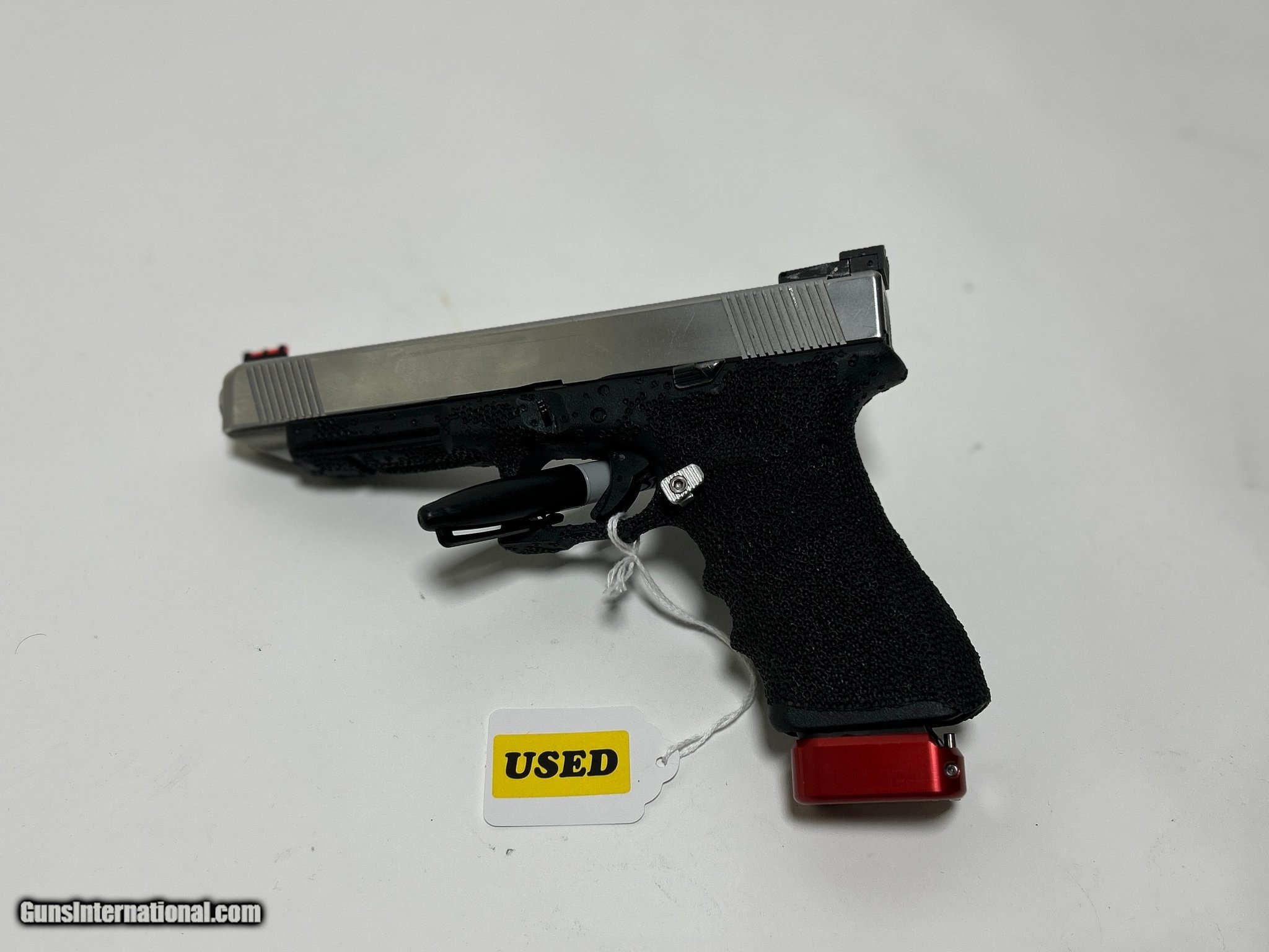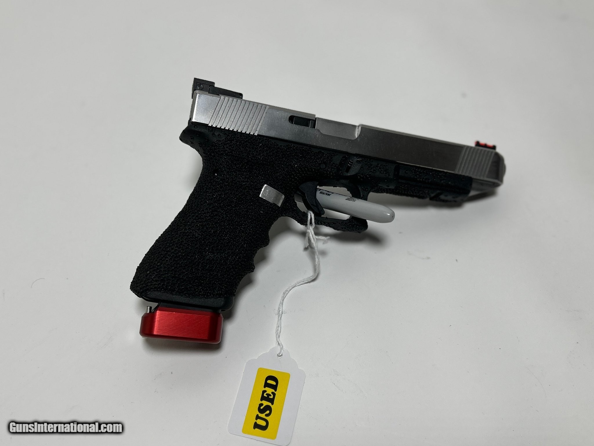 Description: Guns Listing ID: 587973 This G34 even though there is custom stippling comes with a Lone Wolf Slide and Barrel (out of production) and a Taran Tactical baseplate for the mag. SOLD Manufacturer: GLOCK Model: G34 Caliber Info: 9MM LUGER (9x19 PARA) Condition: Used - Non-Certified Barrels: 5.25" BARREL Action: SEMI AUTOMATIC Finish: black & silver |