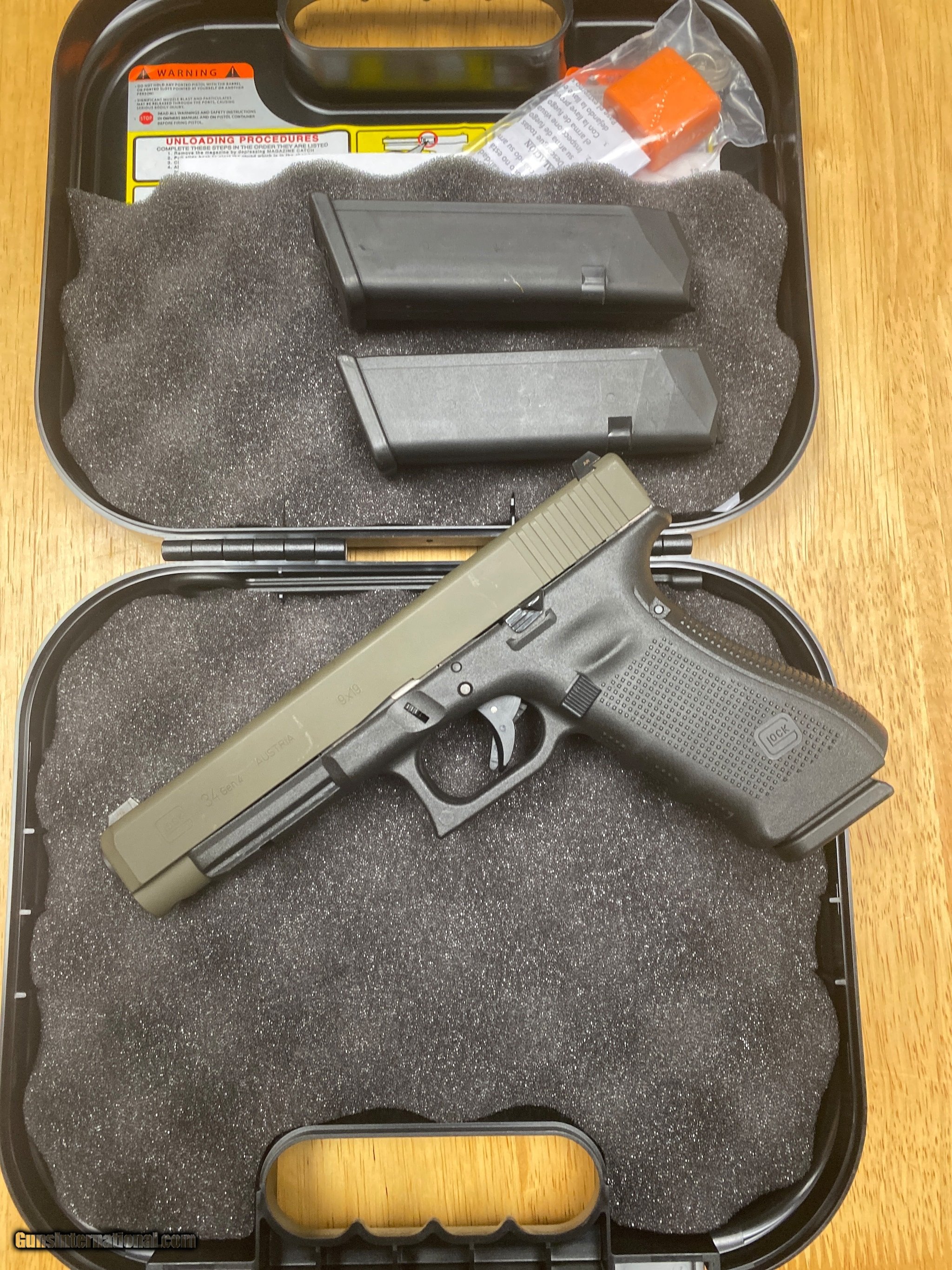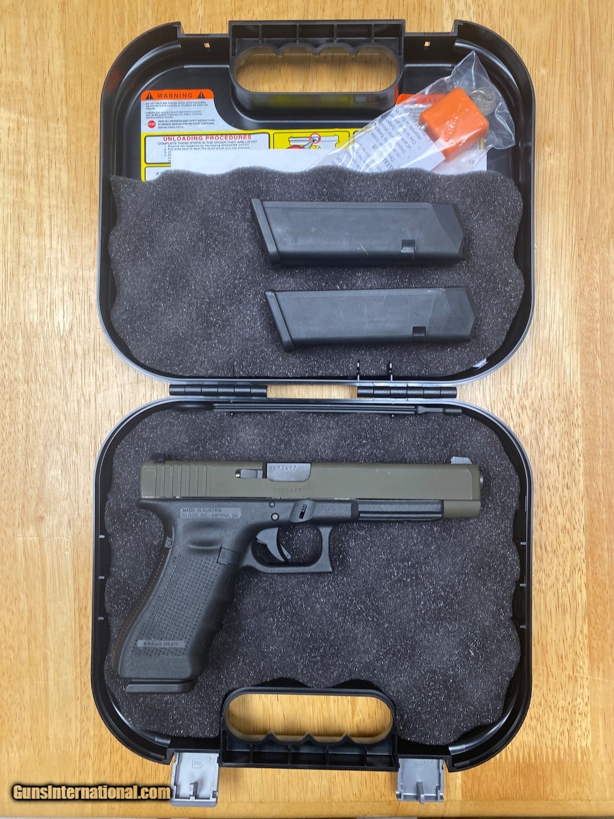 Description: Guns Listing ID: 383920 Agency trade in comes with Box and 3 mags. Refinished slide (magpul green) and Glock Night Sights SOLD Manufacturer: GLOCK Model: G34 GEN 4 Caliber Info: 9 MM Condition: Used - Non-Certified Barrels: 5.31 BARREL Finish: CERAKOTE |