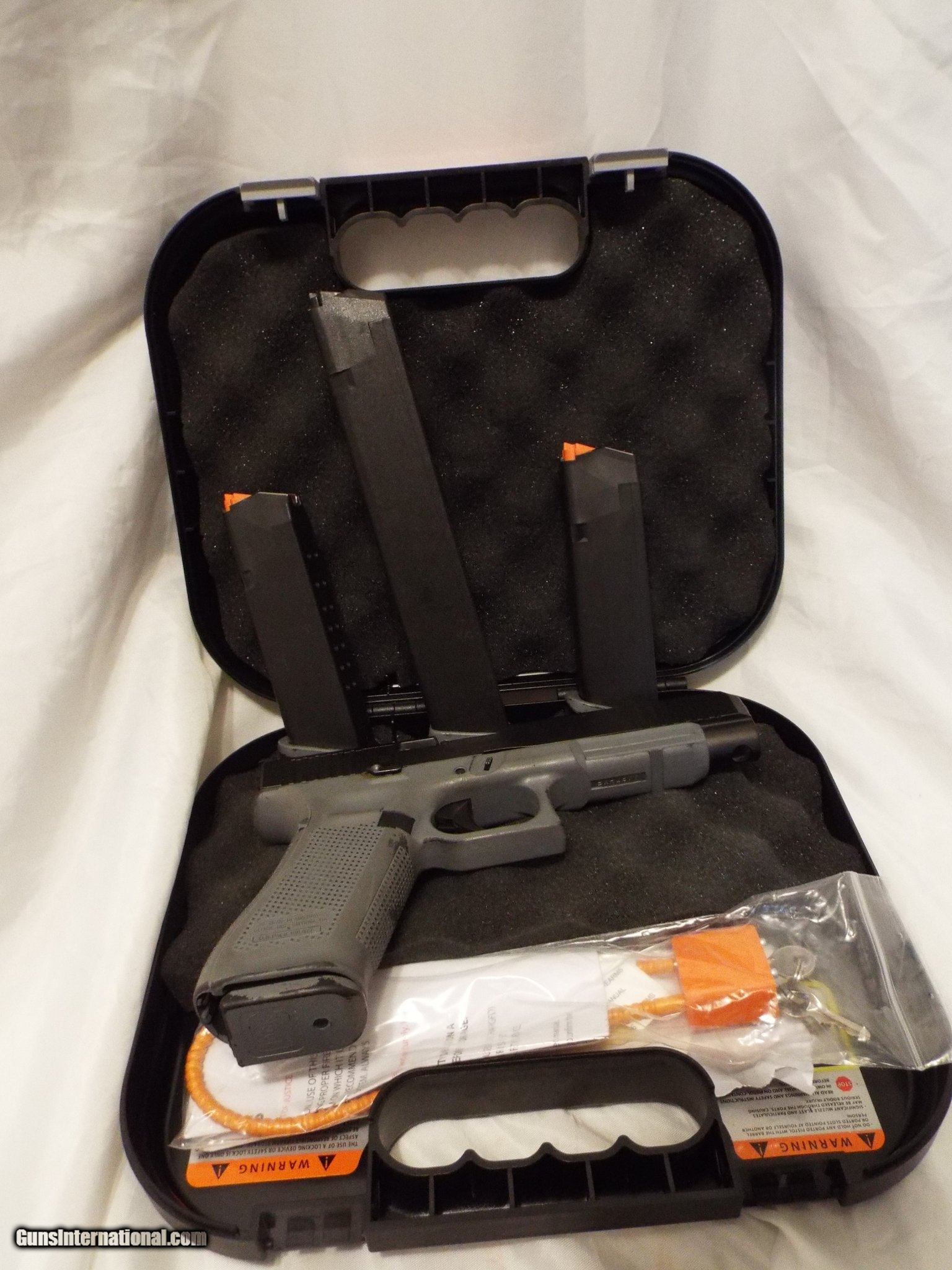 Description: Guns Listing ID: 1328971 This was painted with a Grey Polymer - not clear coated so it can be removed Gun is in great condition over all 3 - 17 rnd mags 1 - 31 rnd Mag Everything else is in the case (mounting plates, lock, cleaning brush, cleaning rod, documents) SOLD Manufacturer: GLOCK Model: G34 GEN 5 MOS FS Caliber Info: 9MM LUGER (9X19 PARA) Condition: Used - Non-Certified Barrels: 5.3 BARREL |