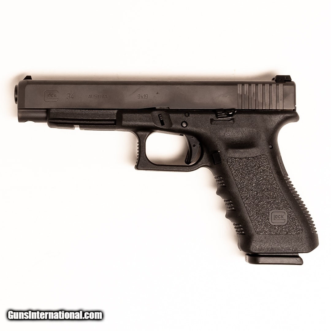 Description: Guns Listing ID: 591195 A polymer-framed pistol with an integrated accessory rail, the Glock G34 is suitable for competition and self-defense. It offers incredible accuracy and features polymer grips with finger grooves for a positive hold. This Glock 34 Gen 3 includes the original case, two 10-round magazines, one 17-round magazine, and a loader. SOLD Manufacturer: GLOCK Model: G34 GEN3 Caliber Info: 9MM LUGER (9X19 PARA) Condition: Used - Certified Barrels: 5.3 BARREL Finish: BLACK |