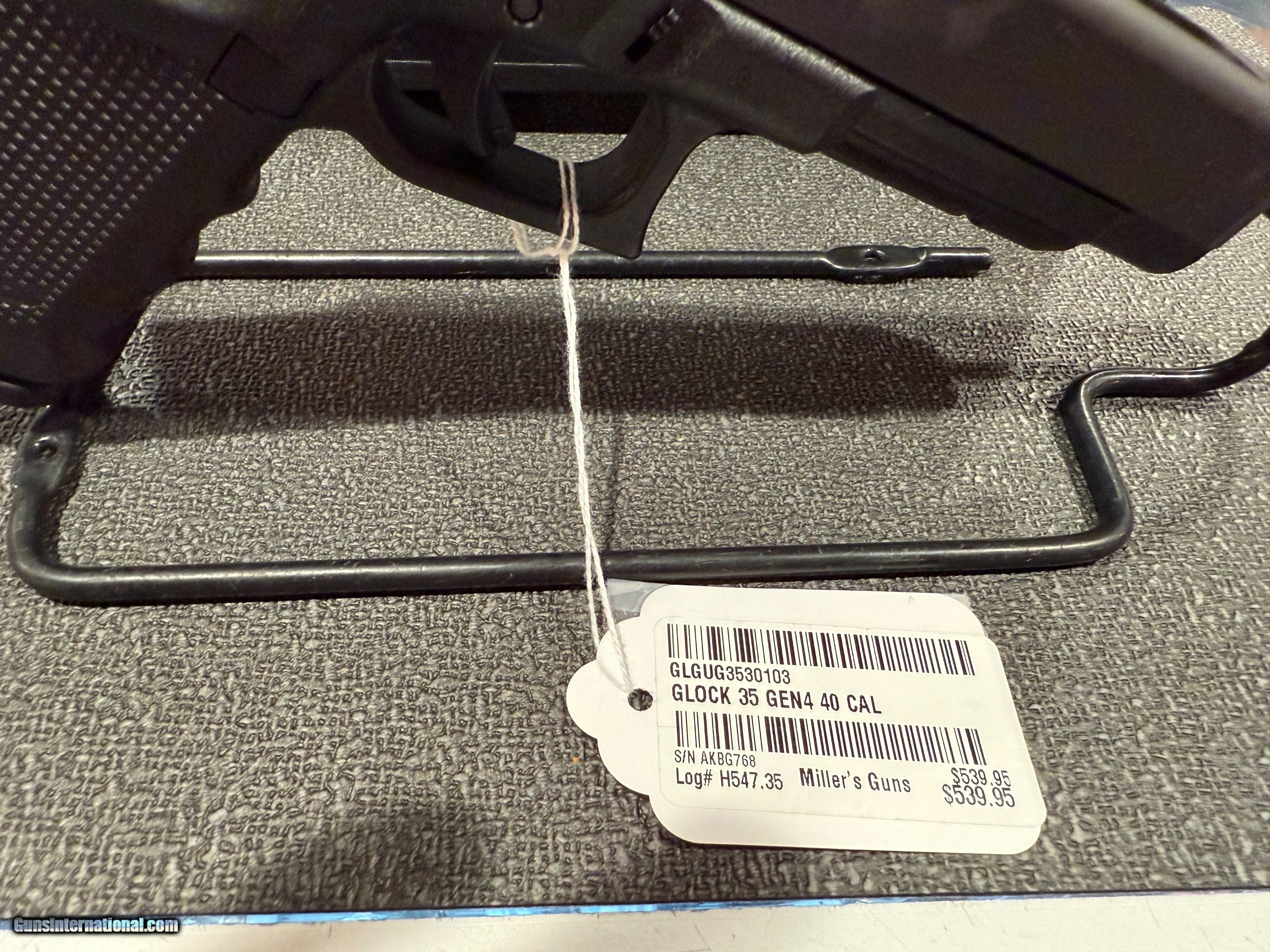 Description: Glock 35 Gen 4 .40 S&W 15 round capacity (3) magazines included Handgun Caliber: .40 Smith & Wesson (.40 Auto, 10 x 21 mm) Manufacturer: Glock Model: 35 Serial Number: AKBG768 Barrel Length: 5.3 Condition: NEW Price: $539.95 Contact Seller |