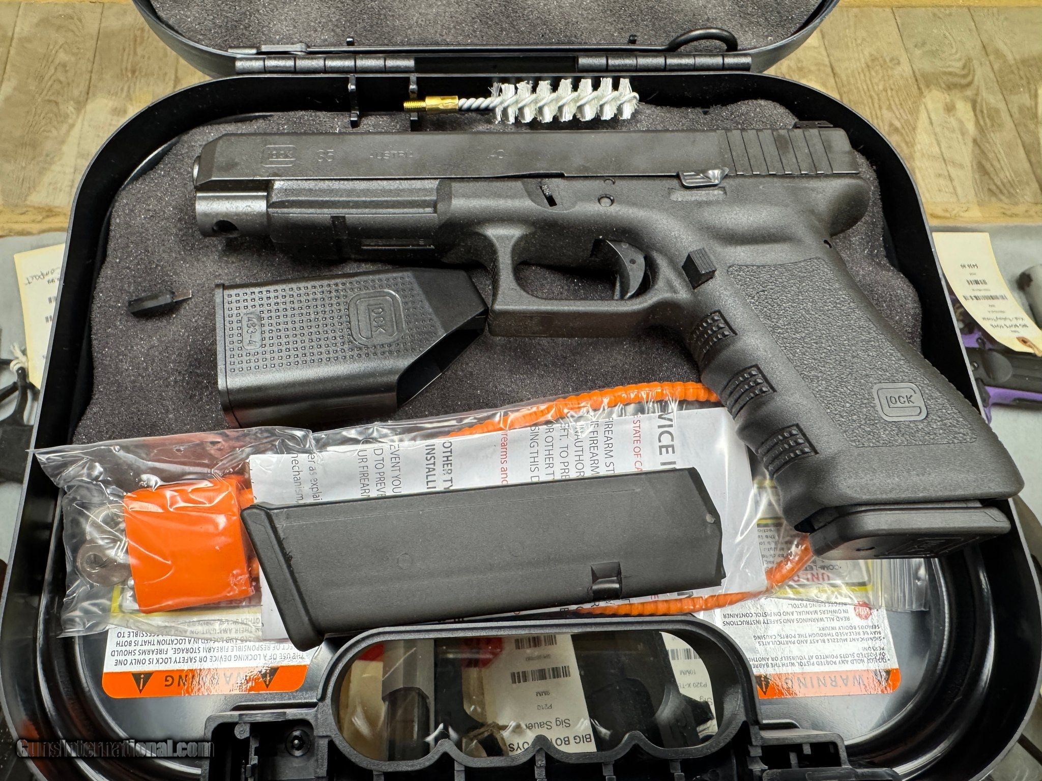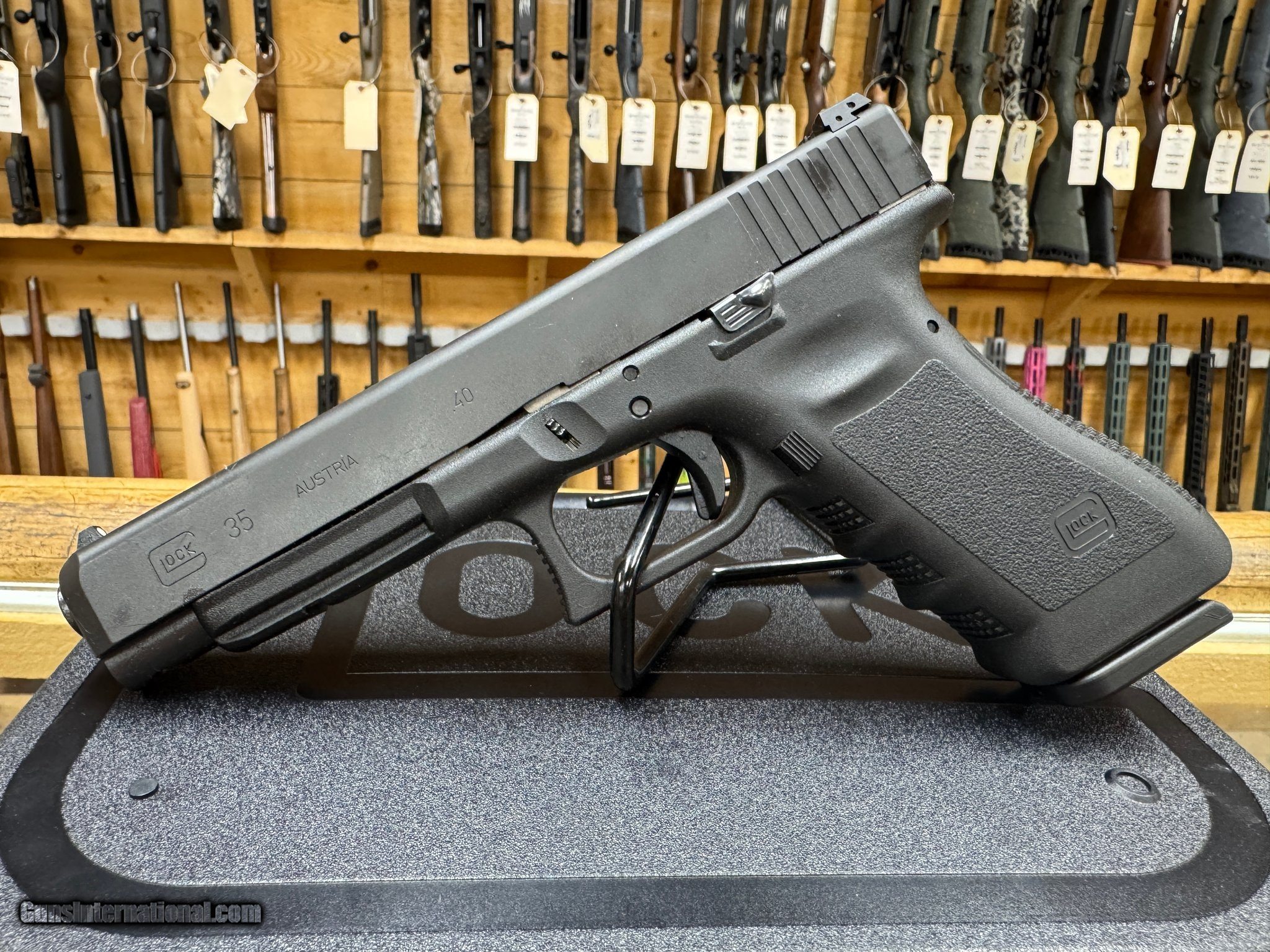 Description: Guns Listing ID: 548120 This is a very good used pistol. It has the original case, 2 mags, speedloader and everything else that you see in the pictures. It has the extended slide stop, and extended mag release. SOLD Manufacturer: GLOCK Model: G35 GEN 3 Caliber Info: .40 S&W Condition: Used - Non-Certified Barrels: 5.3 BARREL Action: STRIKER FIRED |