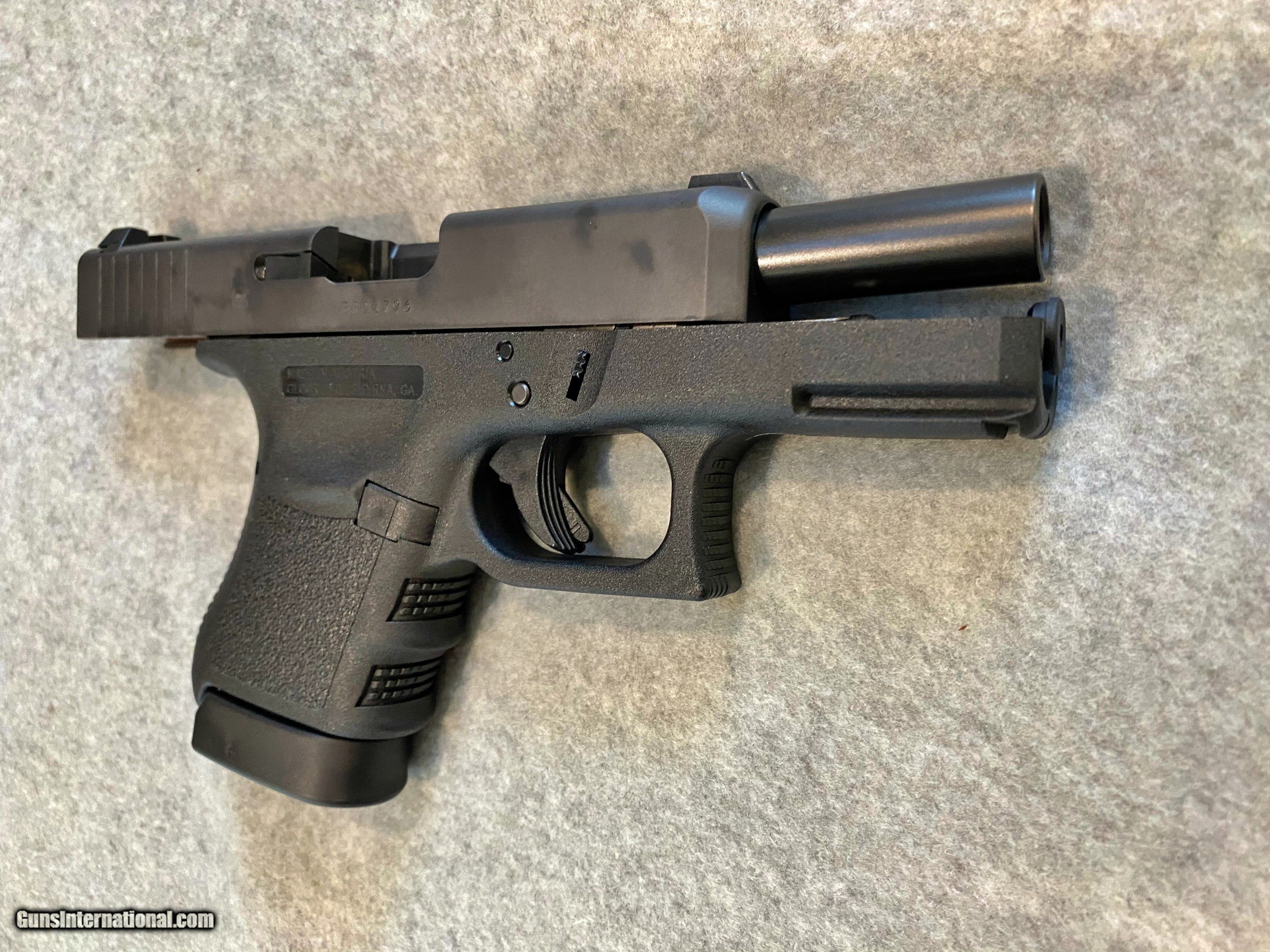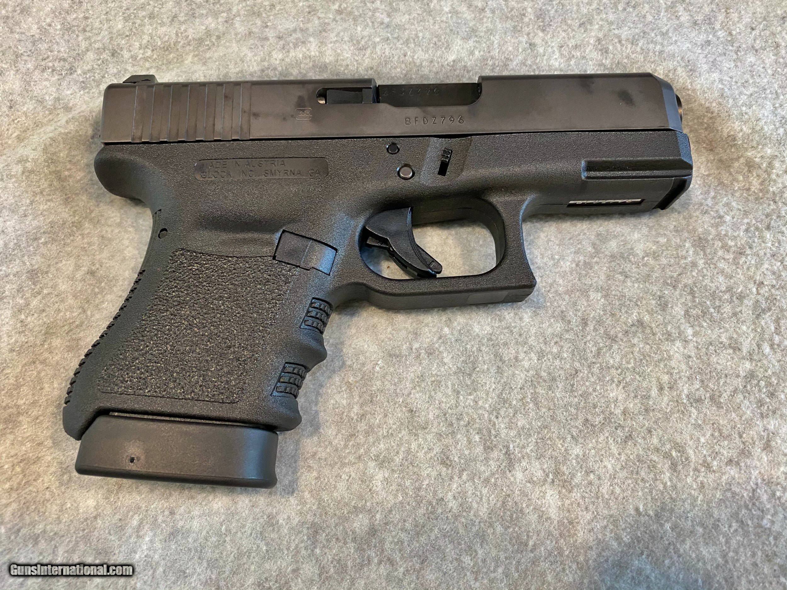 Description: THIS IS A GREAT GLOCK 36 WITH 3 6 ROUND MAGAZSINES AND NIGHT SIGHTS. IT COMES WITH THE GLOCK BOX AND PAPERWORK AND WAS A FORMER LAW ENFORCEMENT FIREARM AND WELL MAINTAINED. G36 Subcompact | .45 Auto GLOCK 36 Six rounds of 45 Auto in a package that fits into the hands of any user. The GLOCK 36 presents grip ergonomics of the next dimension. The GLOCK single stack magazine allows for a slim frame and a slide with reduced width. Together with the secure-grip design and minimal trigger-to-grip distance this makes handling the pistol very simple. Caliber .45 Auto System Safe Action® Mag. Capacity Standard: 6 Barrel Length 96 mm | 3.78 inch Weight without magazine 565 g | 19.93 oz Weight with empty magazine 635 g | 22.40 oz Weight with loaded magazine 760 g | 26.81 oz Trigger Pull 28 N TERMS AND CONDITIONS PRICES SHOWN ARE FOR PAYMENT BY U.S.P.S. MONEY ORDER OR BANK ISSUED CASHIERS CHECK. CREDIT CARD PAYMENTS ARE 3% ADDITIONAL. UPON CLOSING OF THE SALE, YOU WILL BE EMAILED AN INVOICE FOR PAYMENT. PAYMENT MUST BE RECEIVED WITHIN 4 BUSINESS DAYS OF THE INVOICE DATE OR THE SALE WILL BE CANCELLED AND BUYER REPORTED AS “A NON-PAYMENT BUYER”. IF YOU HAVE NOT SELECTED A FORM OF PAYMENT WITH YOUR BUYERS ORDER, YOU WILL BE BILLED FOR CREDIT CARD PAYMENT. IT IS UP TO THE BUYER TO DETERMINE IF THE FIREARM AND OR MAGAZINES ARE LEGAL IN YOUR AREA PRIOR TO YOUR PURCHASE. THE FIREARM WILL BE SHIPPED TO THE FFL HOLDER THAT YOU SPECIFY. THEIR RELEASE TO YOU IS BASED ON YOUR PRIOR ARRANGEMENTS WITH THEM. PLEASE REVIEW THE PHOTOS AND IF YOU HAVE ANY QUESTIONS, PLEASE EMAIL US. WE TAKE DETAILED PHOTOS AND ADD DESCRIPTIONS, BUT THERE MAY BE SOMETHING UP CLOSE THAT YOU WANT TO SEE OR ASK ABOUT. SOMETIMES OUR ITEMS SELL LOCALLY. WE WILL NOT SELL AN ITEM WHEN A BUYER COMMITS TO PURCHASE VIA EMAIL. SHIPPING NORMAL INSURED SHIPPING TO CONTIGUOUS UNITED STATES: LONG GUNS $45.00 HANDGUNS $35.00 HAWAII AND ALASKA: PRICE UPON REQUEST SALES TAX IF YOU ARE A RESIDENT OF NORTH CAROLINA, WE ARE REQUIRED TO COLLECT A 7% STATE SALES TAX BUY IT NOW WE FREQUENTLY RECEIVE MESSAGES AFTER HOURS FROM BUYERS THAT WANT TO KNOW IF A FIREARM IS STILL AVAILABLE. IF IT IS ONLINE IT IS AVAILABLE UNTIL SOMEONE CLICKS THE BUY IT NOW BUTTON. IT IS NOT UNUSUAL TO HAVE MORE THAN ONE INQUIRY FOR THE SAME FIREARM. IT IS AVAILABLE UNLESS STATED OTHERWISE WITH THE PRICE, OR SOMEONE CLICKS THE BUY IT NOW BUTTON. IF YOU SEE A FIREARM THAT YOU WANT, CLICK THE BUY IT NOW BUTTON. THE FIREARM IS NOW YOURS PENDING PAYMENT. IT WILL BE REMOVED FROM THE LISTINGS. WE WILL CONTACT YOU TO MAKE THE ARRANGEMENTS FOR PAYMENT AND SHIPPING. SOLD Handgun Caliber: .45 ACP (.45 Auto) Manufacturer: GLOCK Model: 36 Sights: NIGHT |