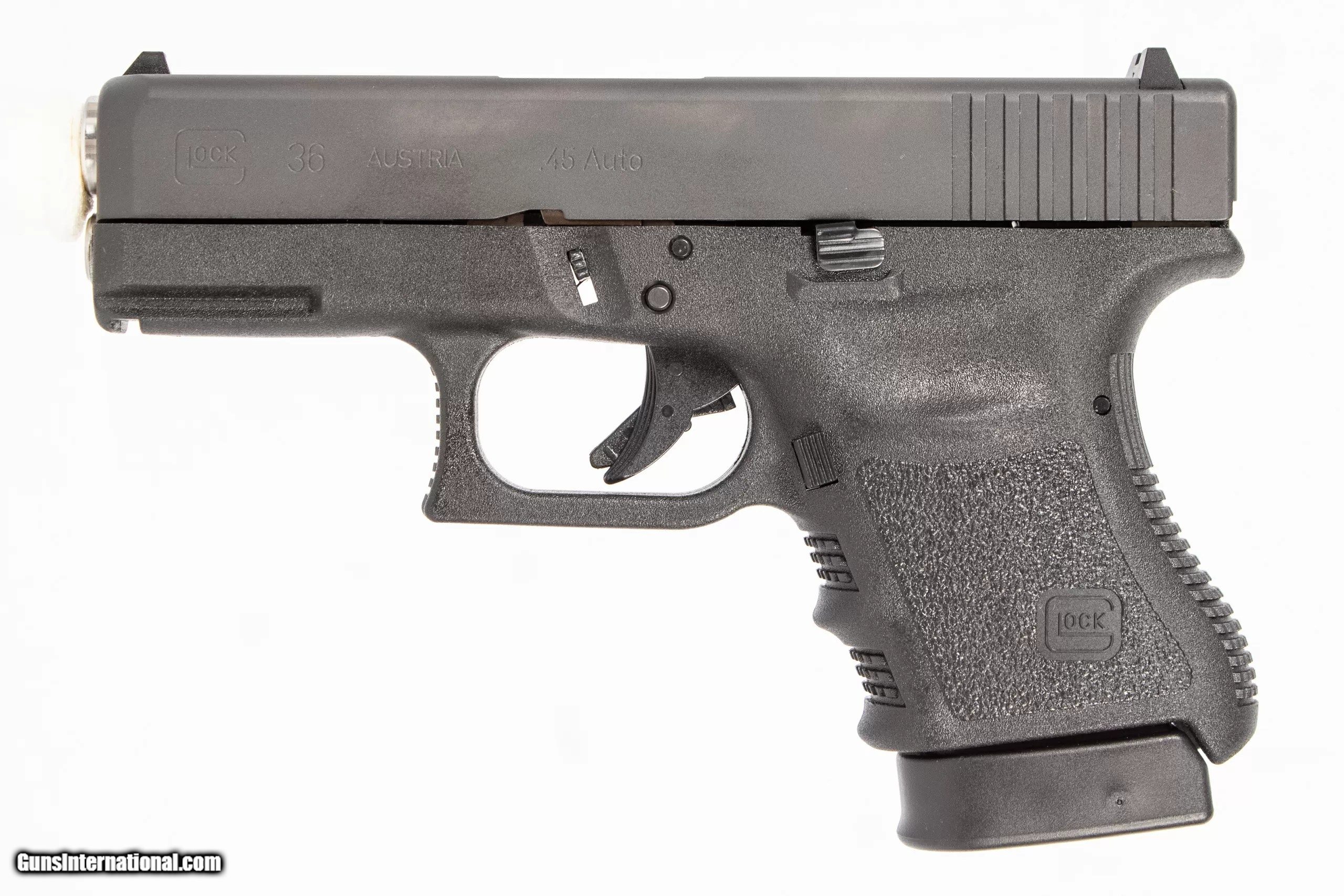 Description: 3rd Generation Glock 36 chambered for .45 ACP with 3.75-inch barrel, grooved frame, accessory rail, standard Glock sights and small mag release. Equipped with stainless barrel and guide rod - includes factory parts and two, six-round magazines. The NRA grading condition for this USED firearm is Very Good. We ship domestically in the United States. Additional shipping rates apply to Alaska and Hawaii. Dury’s Lifetime Warranty: All firearms purchased from Dury’s Gun Shop, NEW or USED, are covered by a lifetime warranty. We will repair or replace, at our discretion, any firearm purchased from Dury’s Gun Shop, Inc. for as long as it is owned by the purchaser. This warranty is not transferable. WE BUY GUNS! NO COLLECTION TOO BIG OR SMALL FOR OUR GUNS INTERNATIONAL CUSTOMERS ALL OF OUR FIREARMS CAN BE PURCHASED DIRECTLY FROM OUR DURY’S GUNS SITE ! SOLD Manufacturer: Glock Model: 36 Gen 3 Caliber Info: 45 ACP Barrels: 4inches |