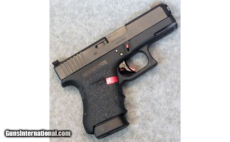 Description: Glock ~ 36 Gen 3 ~ Chambered in .45 Auto. Is a small single stack concealed carry striker fire pistol, in a venerable caliber. Features a 3.5" barrel paired with iron sights, aftermarket aluminum trigger with red tongue safety, aftermarket anodized red aluminum magazine release, Talon grip tape side panels, and an overall black finish. Comes with factory box, documentation, one 6 + 1 capacity magazine, and one magazine with a Hyve +1 extension with a 7 + 1 total capacity. .45 Auto SOLD Chambers: .45 Auto. Metal Condition: Very good condition. Bore Condition: Very good condition. Triggers: 6.75 pounds. Weight: 1.5 pounds Sights: Iron sights. Item Location: Acworth, GA |