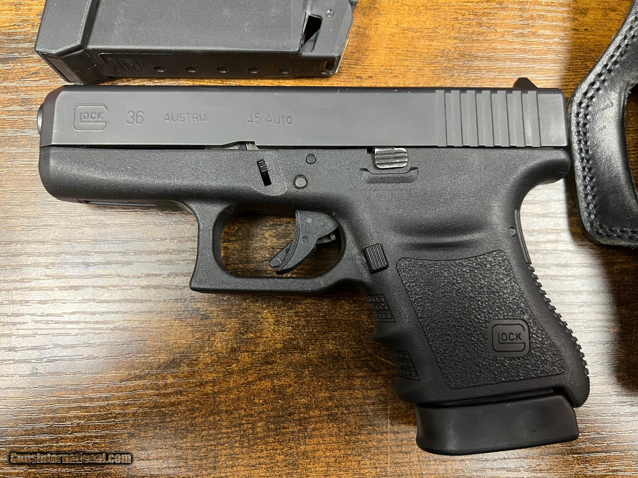Description: Guns Listing ID: 523240 Glock 36 .45 ACP 2.5in barrel Comes w/ 3-6rd magazines Leather holster Has some scratches on the slide SOLD Manufacturer: GLOCK Model: G36 Caliber Info: .45 ACP Condition: Used - Non-Certified Barrels: 3 BARREL Action: SEMI AUTOMATIC |