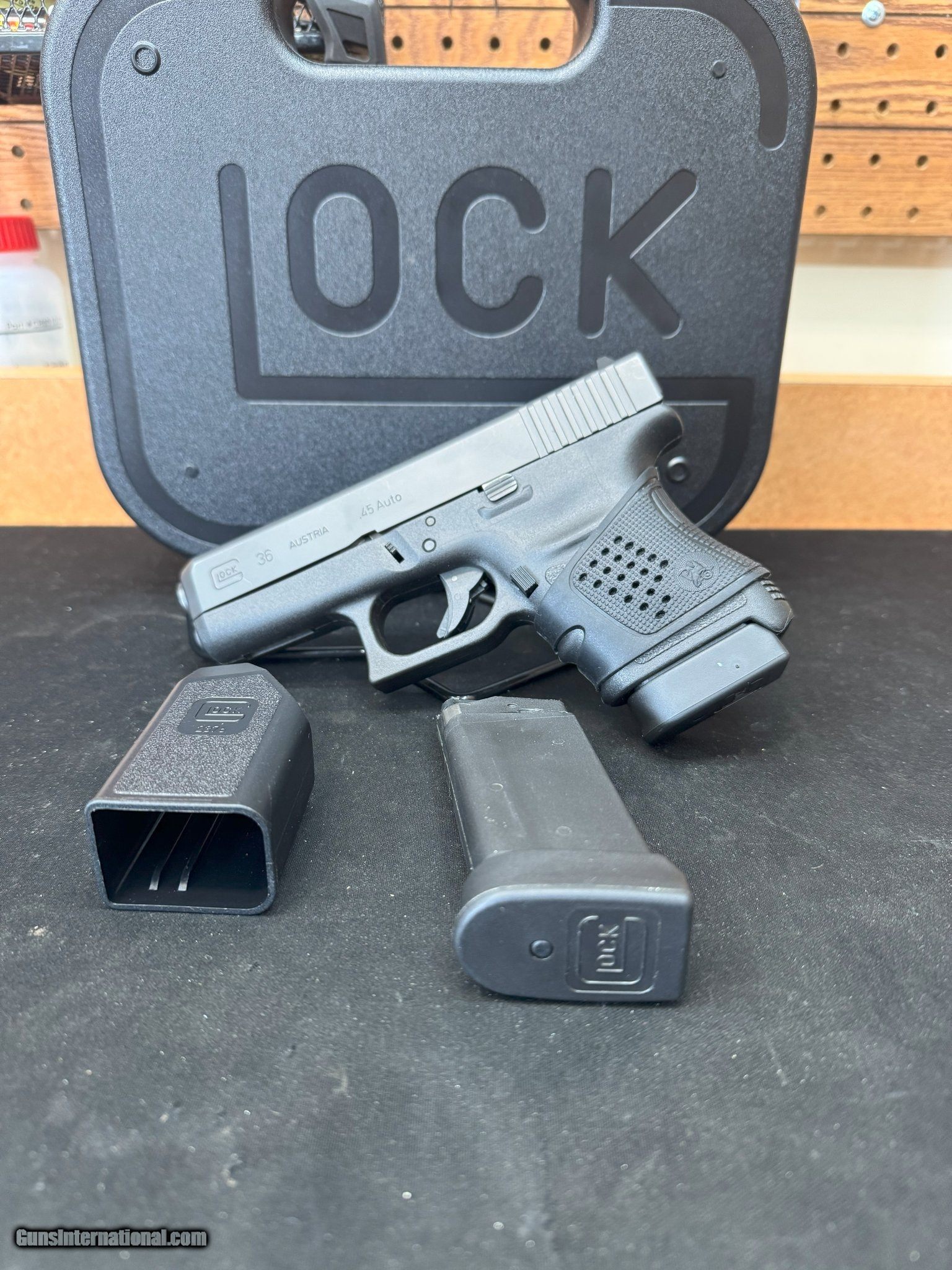 Description: Guns Listing ID: 546154 ?? Glock 36 .45 ACP – Excellent Condition – Original Box – Two 6-Round Mags ?? Description: For sale is a Glock 36, chambered in .45 ACP, in excellent condition. This compact single-stack Glock offers the legendary reliability and ruggedness of Glock engineering in a slimline frame perfect for concealed carry, while still packing the stopping power of the .45 Auto cartridge. This pistol shows minimal signs of use, with a clean bore, smooth slide action, and crisp factory trigger. It has been properly maintained and stored, and is ready for its next owner. Includes: Original Glock factory box with matching serial number label Two (2) factory 6-round magazines Factory sights Specifications: Caliber: .45 ACP Capacity: 6+1 Barrel Length: 3.78\" Action: Safe Action (Striker-Fired) Frame: Slimline Polymer Weight (unloaded): 20.11 oz Sights: Fixed Glock sights Condition: This Glock 36 is in excellent overall condition, showing only light handling marks consistent with careful use. The frame and slide are clean and unmarred, the bore is bright and sharp, and all controls function properly. Mechanically sound and cosmetically sharp—this is an ideal carry pistol or backup for those who want compact power and Glock reliability. SOLD Manufacturer: GLOCK Model: G36 Caliber Info: .45 ACP Condition: Used - Non-Certified Barrels: 3.8" BARREL Action: STRIKER FIRED Weight: 1.4 LBS. |