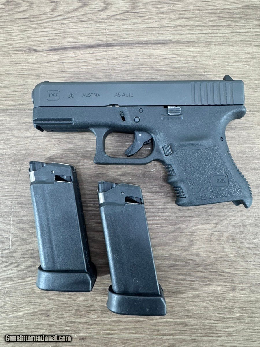 Description: Guns Listing ID: 524646 PISTOL: GLOCK MODEL 36 GEN 3, SERIAL NUMBER BBTZ712, SEMI - AUTOMATIC, 45 ACP (45 AUTO), BLACK (MATTE), 3.75\" BARREL. NO BOX OR PAPERS. TWO 6 ROUND MAGAZINES. SOLD Manufacturer: GLOCK Model: G36 GEN 3 Caliber Info: .45 ACP Condition: Used - Non-Certified Barrels: 3.75 BARREL Action: SEMI AUTOMATIC Finish: blued |