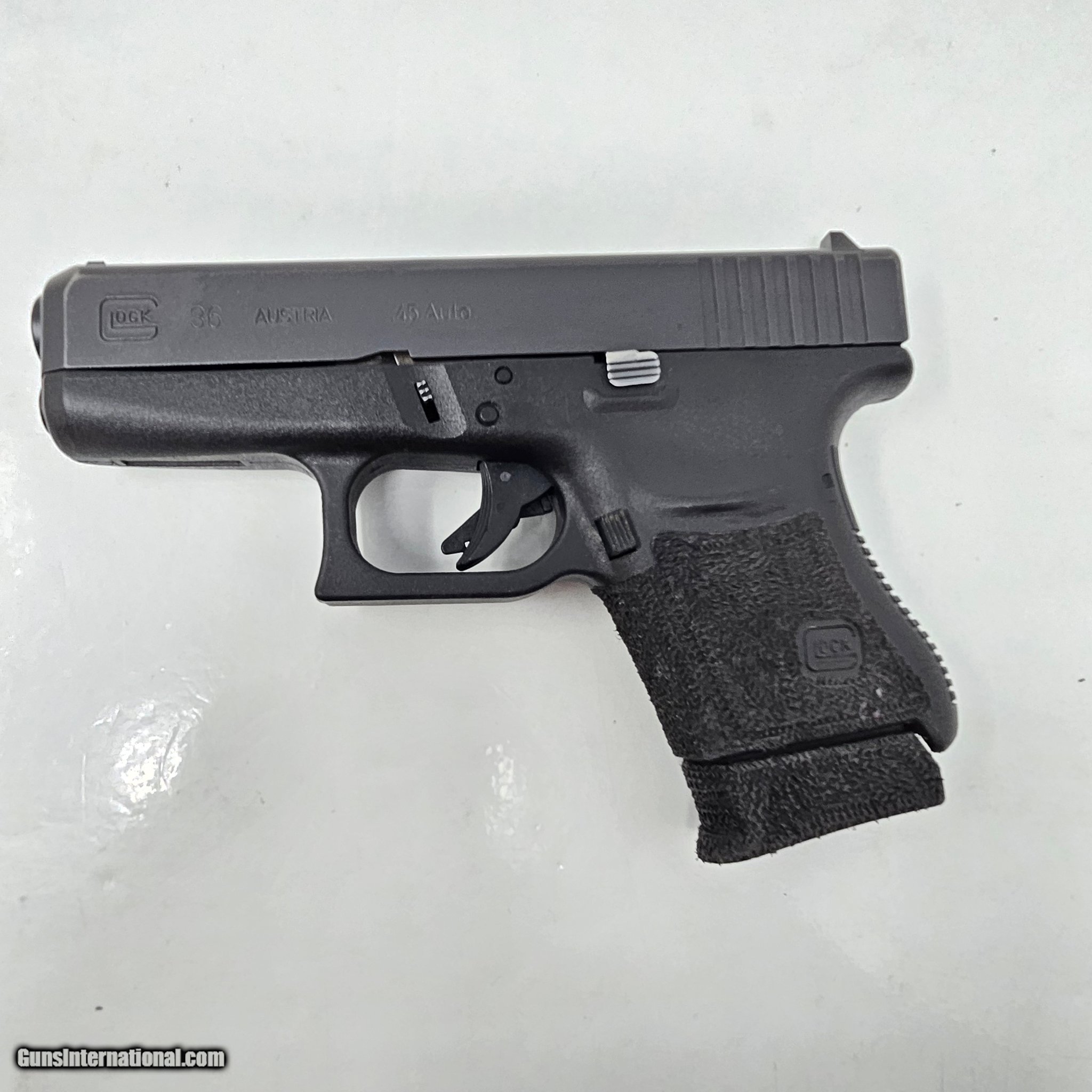 Description: Guns Listing ID: 546898 Glock 36 with stippled frame and Pearce mag extension. Light wear from standard use. SOLD Manufacturer: GLOCK Model: G36 GEN 3 Caliber Info: .45 ACP Condition: Used - Non-Certified Barrels: 3.5 BARREL Action: SEMI AUTOMATIC Finish: black |