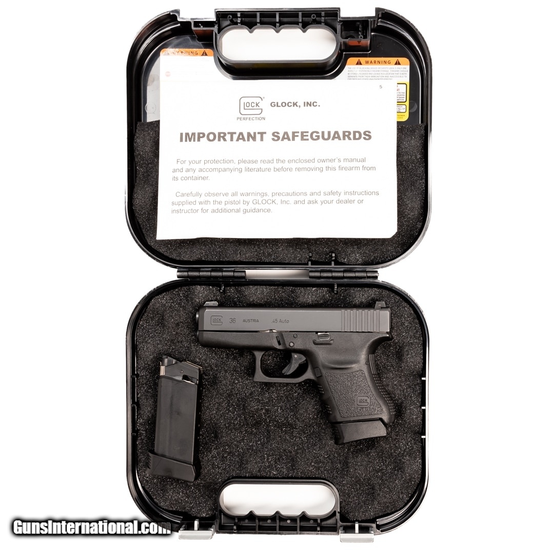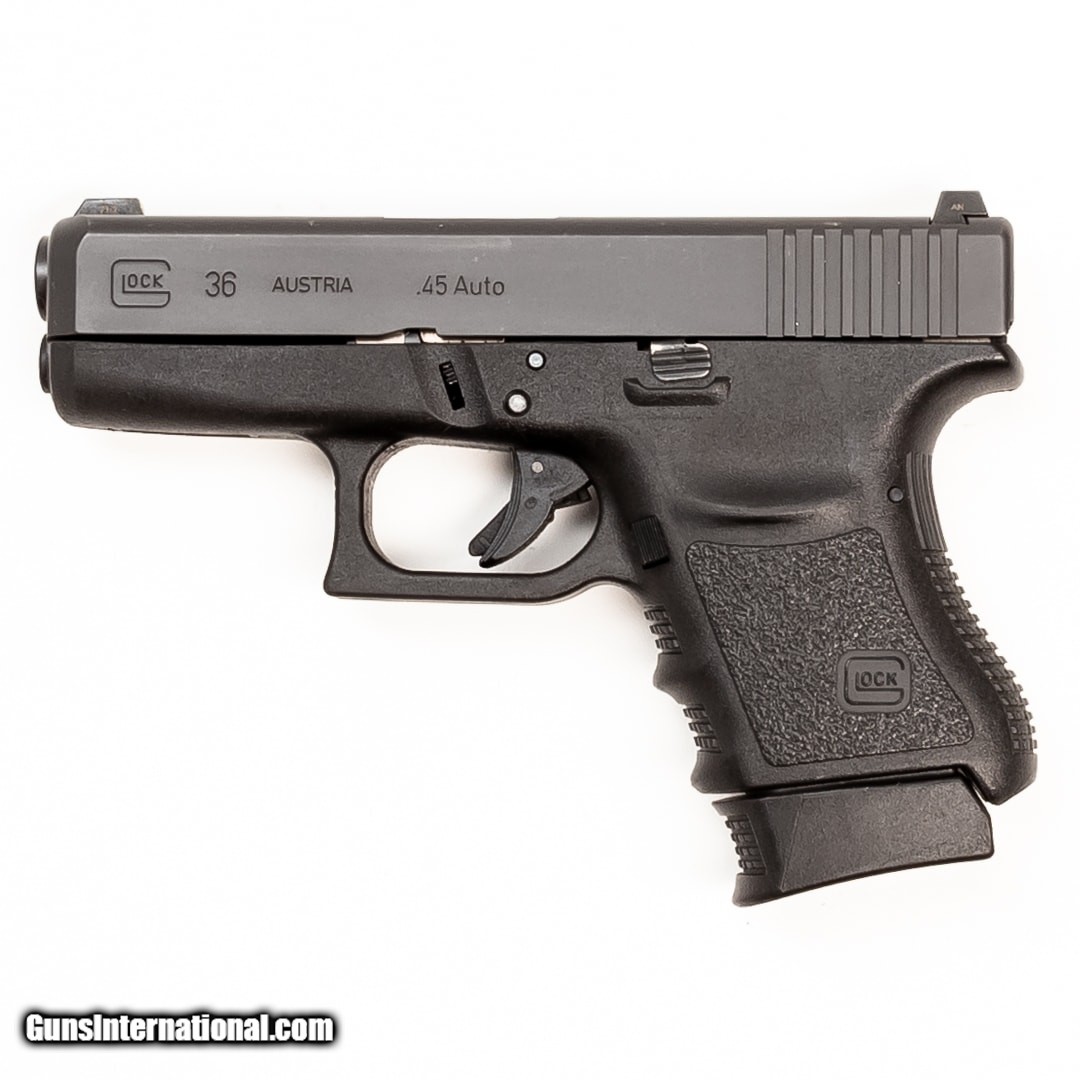 Description: Guns Listing ID: 905710 The Glock 36 is a subcompact pistol that features a reduced frame and slide width for better concealment. A single-stack magazine allows for 6 rounds to be carried giving it a similar capacit SOLD Manufacturer: GLOCK Model: G36 (LE TRADE-IN) Caliber Info: .45 ACP Condition: Used - Non-Certified Barrels: 3.78 BARREL Finish: BLACK |