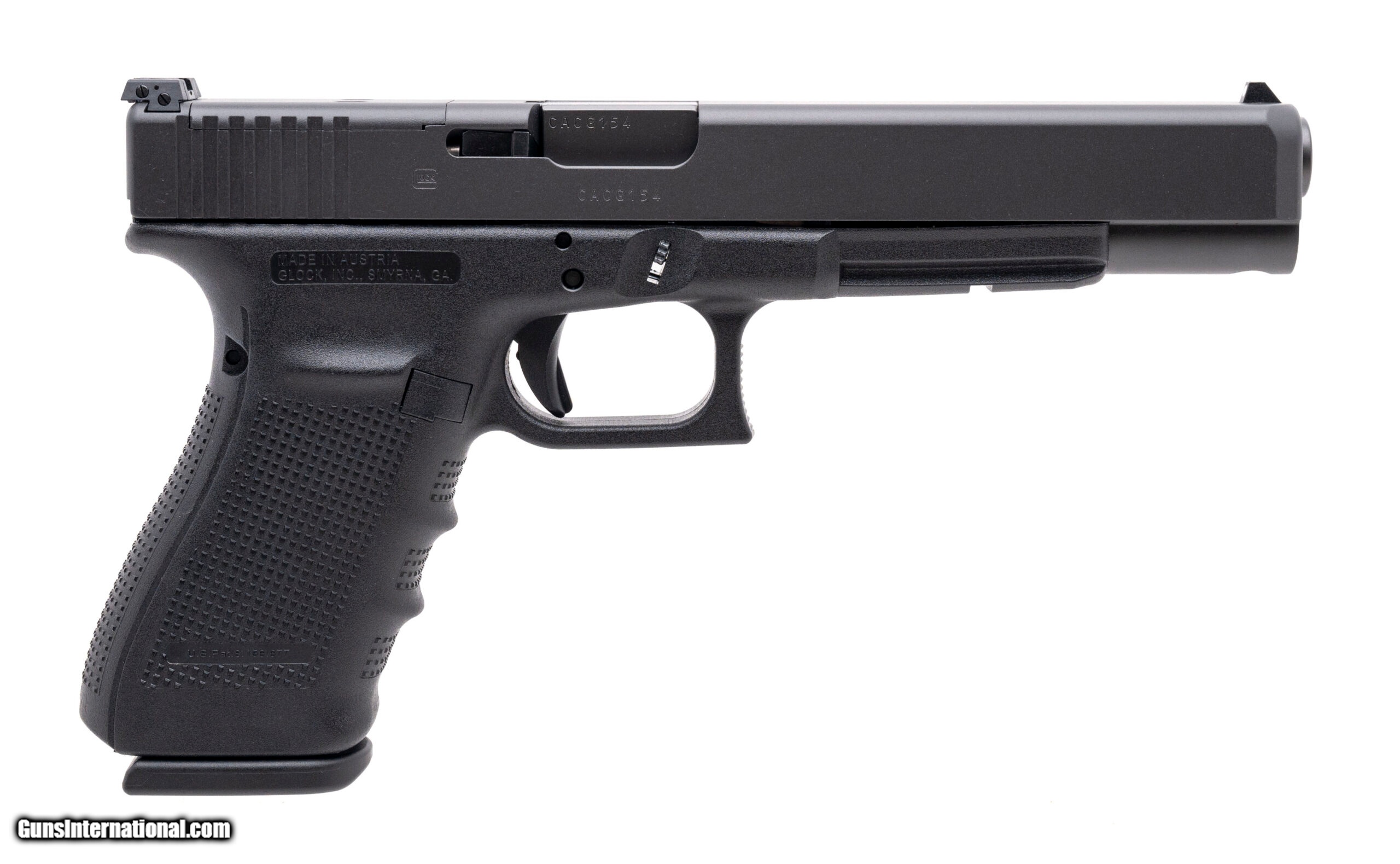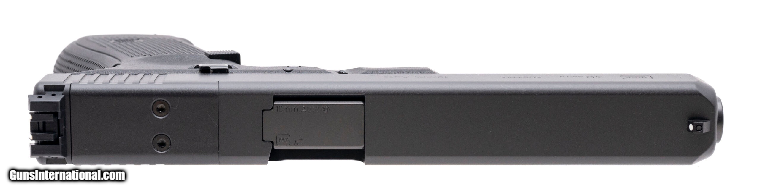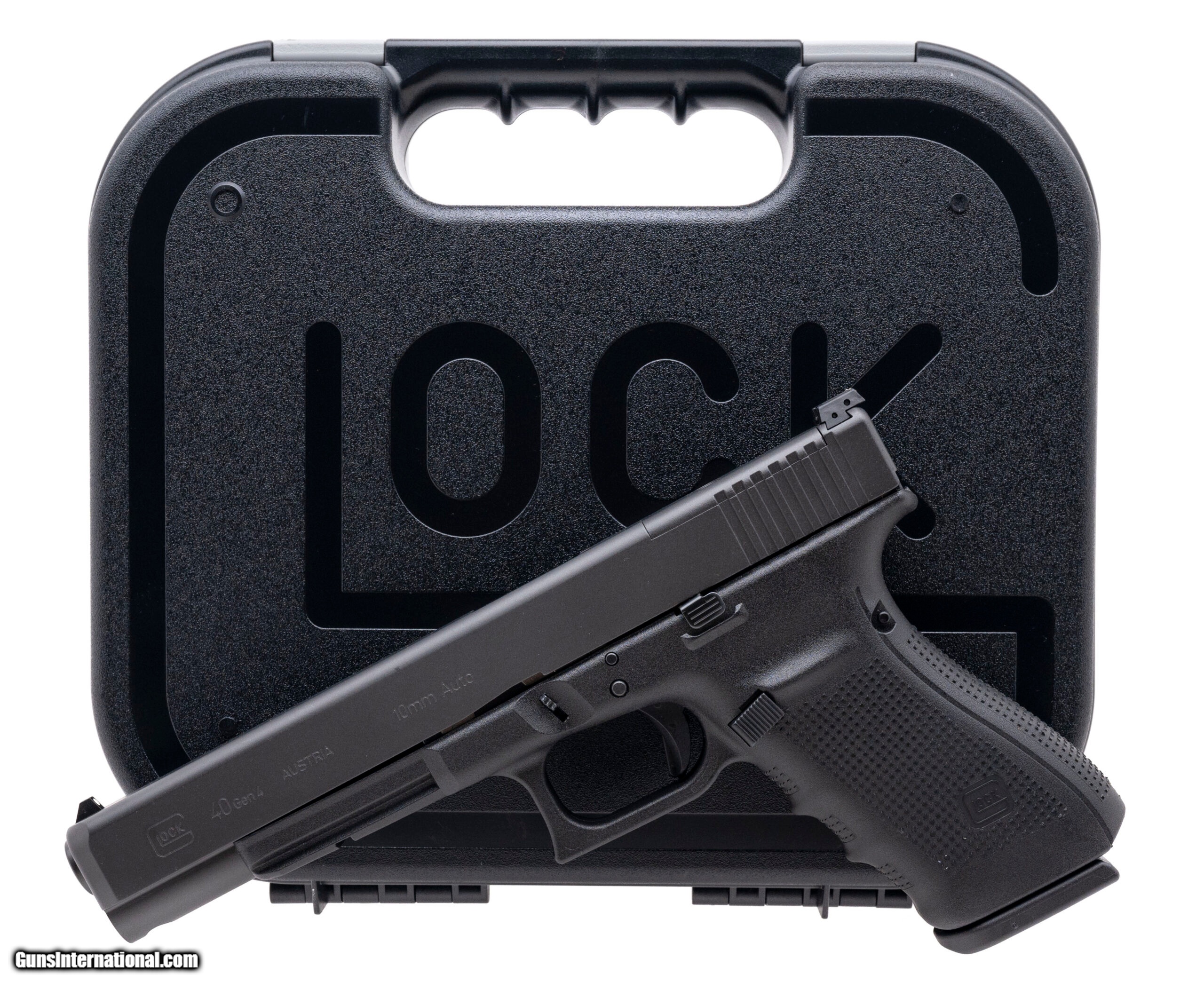 Description: "SN: CACG154. Modern production 10mm Auto with a 6.02"" barrel. Bore is bright with excellent rifling. Semi auto, Full size pistol. Finish is in excellent condition. Polymer frame and grip are in excellent condition. Comes with case and Glock MOS Adapter set. SOLD |