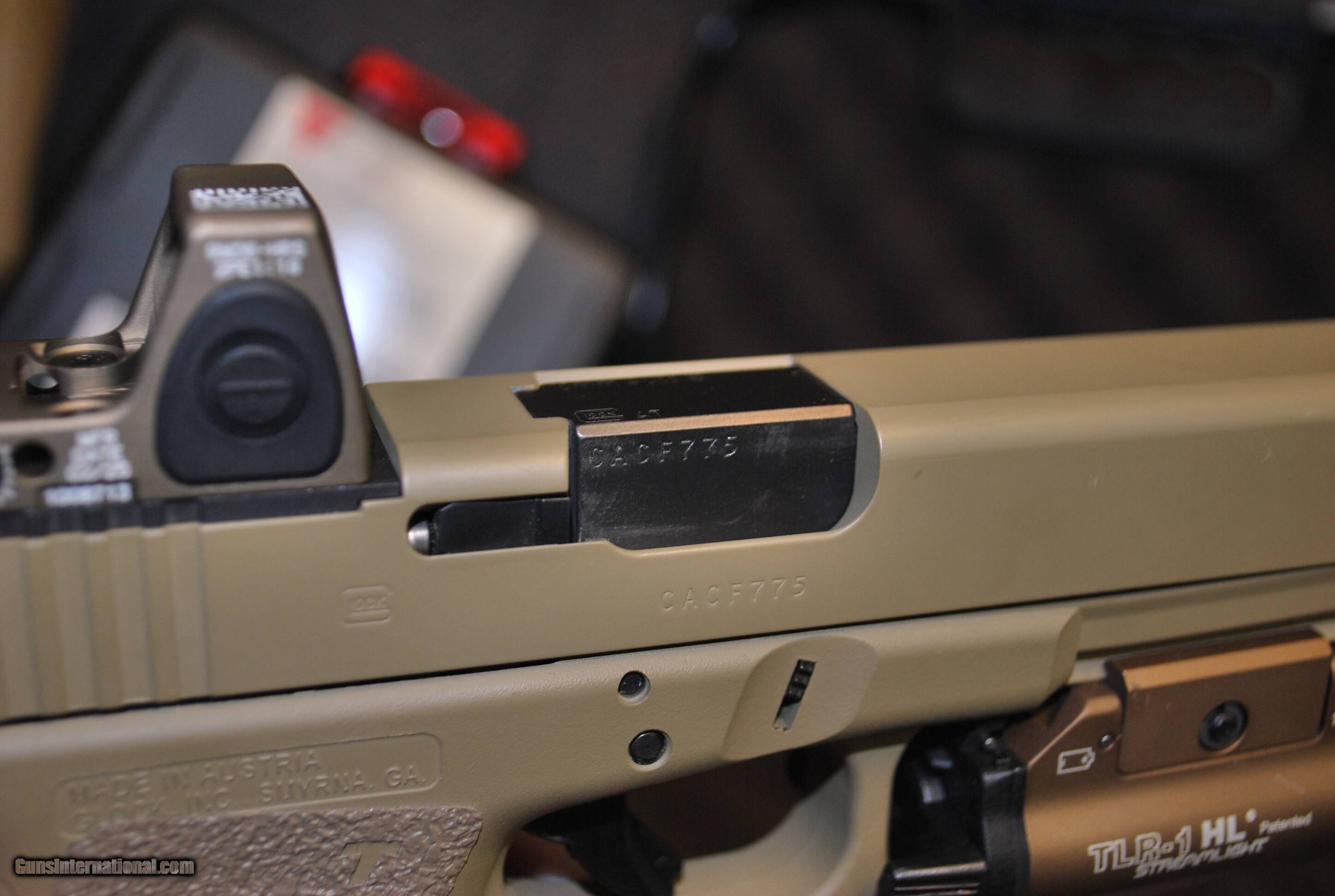 Description: Everything you'd ever want or need for a Glock 40. Used (Great Condition) Factory Coyote Tan Cerakote Glock 40 Gen 4 10mm. In good condition, only notable wear is slight along the front top right slide from holster (shown in pictures). Comes with two mags, original case and documents. Has smooth textured grip tape installed, but is easily removable if undesired. More details on manufacturer : ://us.glock/en/products/law-enforcement/pistols/G40-Gen4-MOS Comes with MOS Plate Kit, one plate used to install RMR. Allows for installation of most common red dot mounting styles. More details: ://glockstore/Glock-M.O.S.-Adapter-Set-02-for-G40 Trijicon RMR, RM06 Type 2 HRS 3.25 MOA Red Dot in Coyote Brown. Glass is clean, functions perfectly. Installed with MOS plate. More details on manufacturer : ://trijicon/products/details/rm06-c-700780 TLR-1 HL Steamlight Light. Functions perfectly, glass is clean. More details on manufacturer : ://streamlight/products/detail/tlr-1-hl Handgun Caliber: 10mm Auto Manufacturer: Glock Model: 40 Condition: Great Sights: Factory Optic: Trijicon RMR Coyote Brown Price: $1,200.00 Pay with