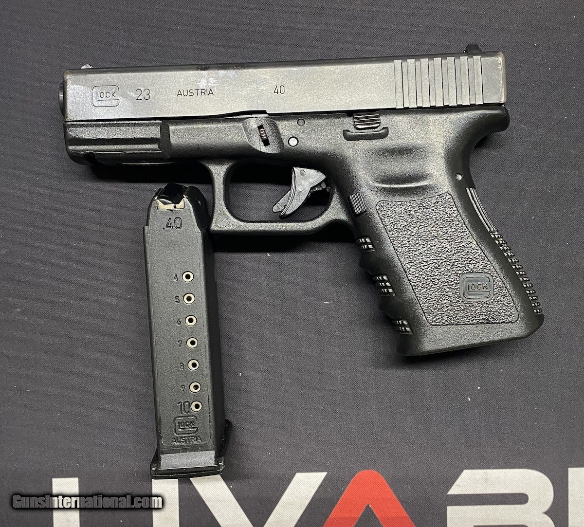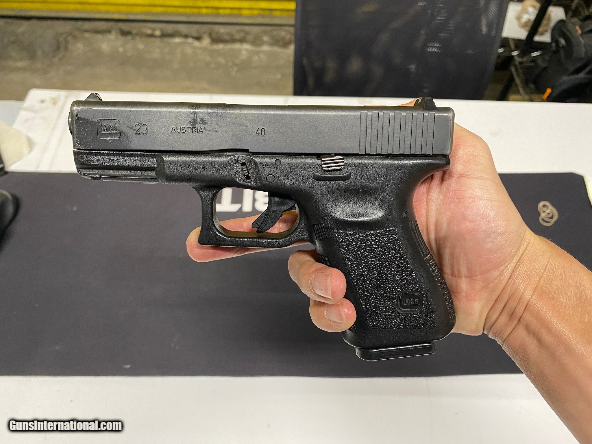 Description: Guns Listing ID: 691038 *** PRE-OWNED / IN VERY GOOD-FAIR CONDITION *** . \" GLOCK 23 AUSTRIA (3RD GEN.) .40 CAL. SEMI-AUTO PISTOL -ALL BLACK \" COMES WITH ONE 10-ROUND MAGAZINE. . \" PLEASE SEE ALL PHOTOS \" . \"ALL FIREARMS ARE INSPECTECTED BY A CERTIFIED GUNS-SMITH & NRA INSTRUCTOR \" (ITEM CODE:G-I-933) SOLD Manufacturer: GLOCK Model: .40 S&W G23 GEN3 Caliber Info: .40 S&W Condition: Used - Non-Certified Barrels: 3 BARREL Finish: BLACK ANODIZED |