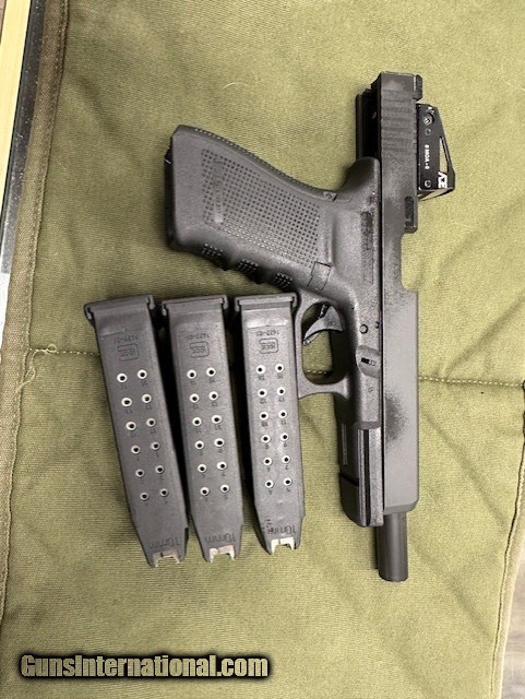 Description: Guns Listing ID: 578185 For sale: Glock G40 Gen4 chambered in 10mm Auto. This example is in excellent condition and is set up and ready to rock — a red dot sight is installed, and the pistol comes with the original case and three magazines. Condition & notes Overall: Excellent — well cared for, minimal handling/holster marks only. Barrel / bore: Clean and serviceable Frame/slide: No cracks or structural damage; normal light wear consistent with careful use. Optic: Red dot sight permanently/securely mounted (brand not specified). Optic included. Magazines: 3 magazines included. Accessories: Original hard case included. Function: Mechanically sound — cycles and functions as expected What’s included Glock G40 Gen4 — 10mm Mounted red dot sight (installed) 3 magazines Original hard case Manufacturer: GLOCK Model: G40 GEN 4 MOS Caliber Info: 10MM Condition: Used - Non-Certified Barrels: 6" BARREL Action: STRIKER FIRED Weight: 1.7 lbs. Price: $785.99 Contact Seller |