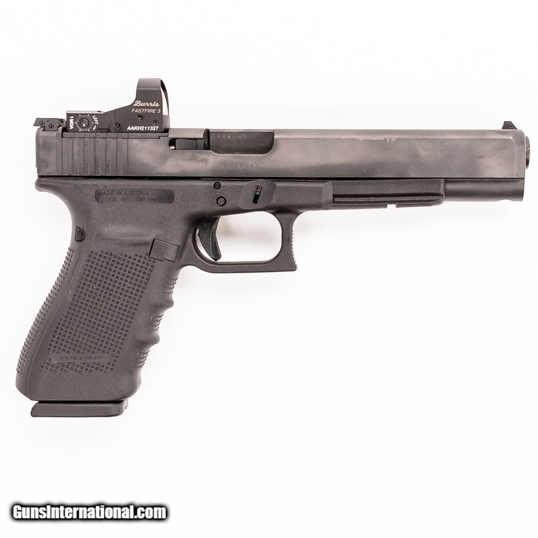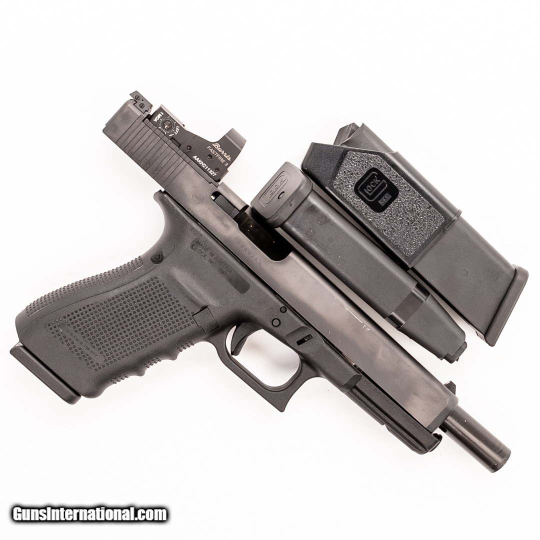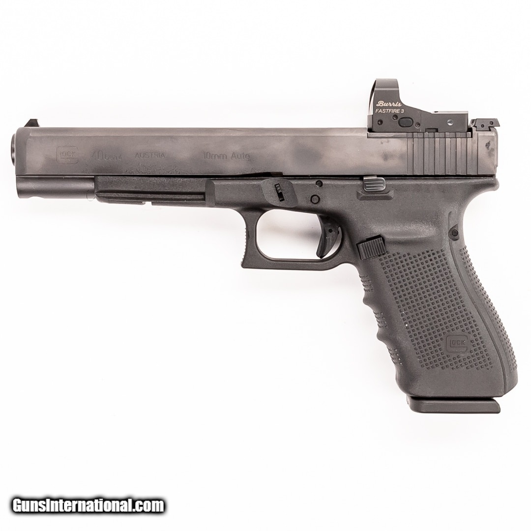 Description: Guns Listing ID: 394467 Chambered in the powerful 10mm with a high ammunition capacity, the Glock G40 Gen 4 MOS is an excellent handgun for hunting and self-defense in bear country. The long barrel improves velocity and accuracy, while the extended slide and sights offer a longer sight radius for enhanced precision. This Glock 40 MOS has a Fastfire 8MOA red dot reflex sight with the box, manual, and parts. Purchase includes the original case, manual, three 15-round magazines, backstraps, and a loader. SOLD Manufacturer: GLOCK Model: G40 GEN4 MOS Caliber Info: 10MM Condition: Used - Certified Barrels: 6 BARREL Finish: BLACK |