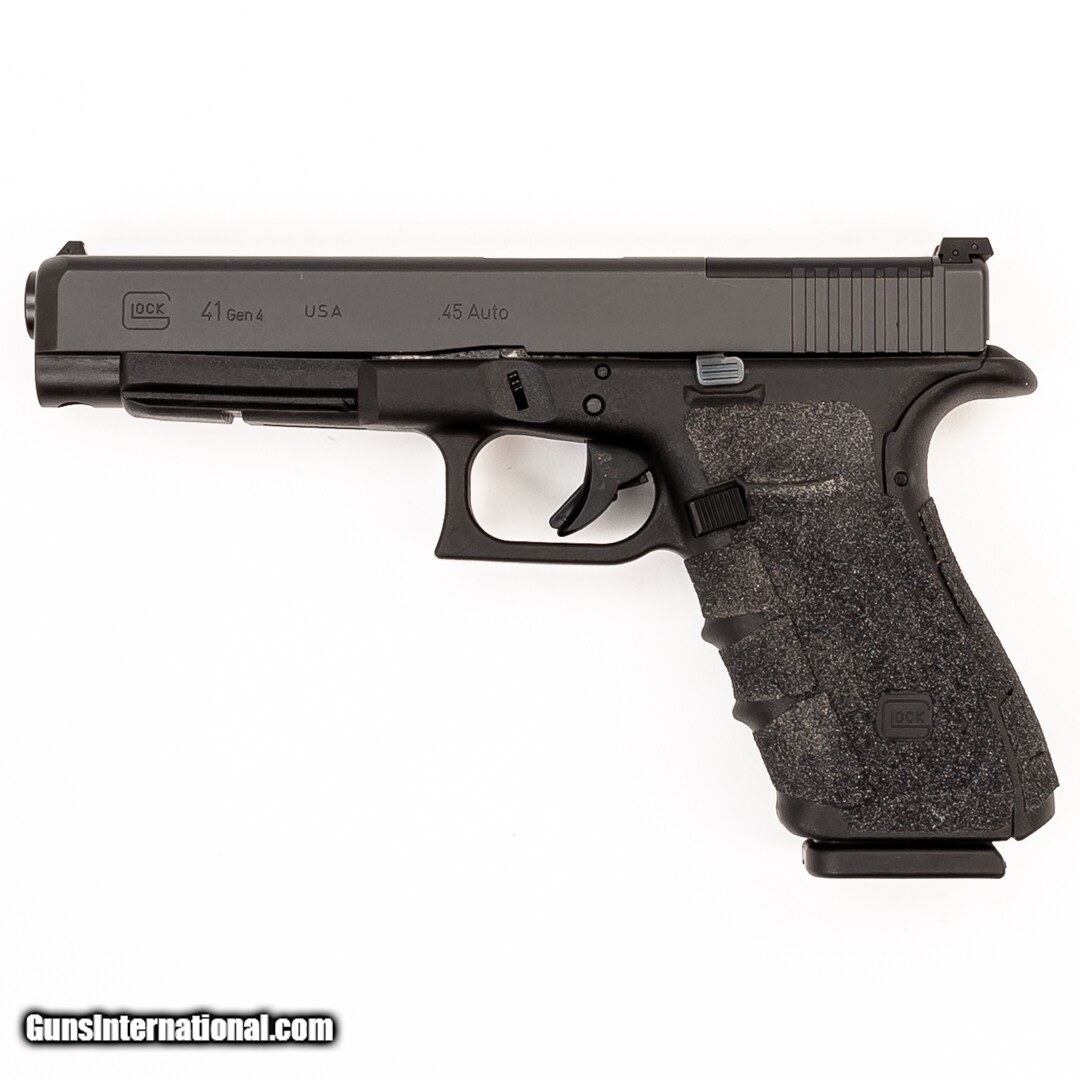 Description: Guns Listing ID: 1230583 This optic ready Glock features three 13-round magazines, grip tape and an adjustable rear sight. Get the best bang for your buck when you get a Certified Used Firearm . When you see the Certified Used stamp on any of our firearms, you can be confident that you’re getting exactly what you want – a gun only in very good to excellent condition and held to the highest quality standard. All Certified Used Guns come with a ‘no questions asked’ return policy . PLUS, ALL CERTIFIED USED GUNS SHIP FREE! SOLD Manufacturer: GLOCK Model: 41 GEN 4 Caliber Info: .45 ACP Condition: Used - Non-Certified Barrels: 5.2 BARREL Finish: BLACK |