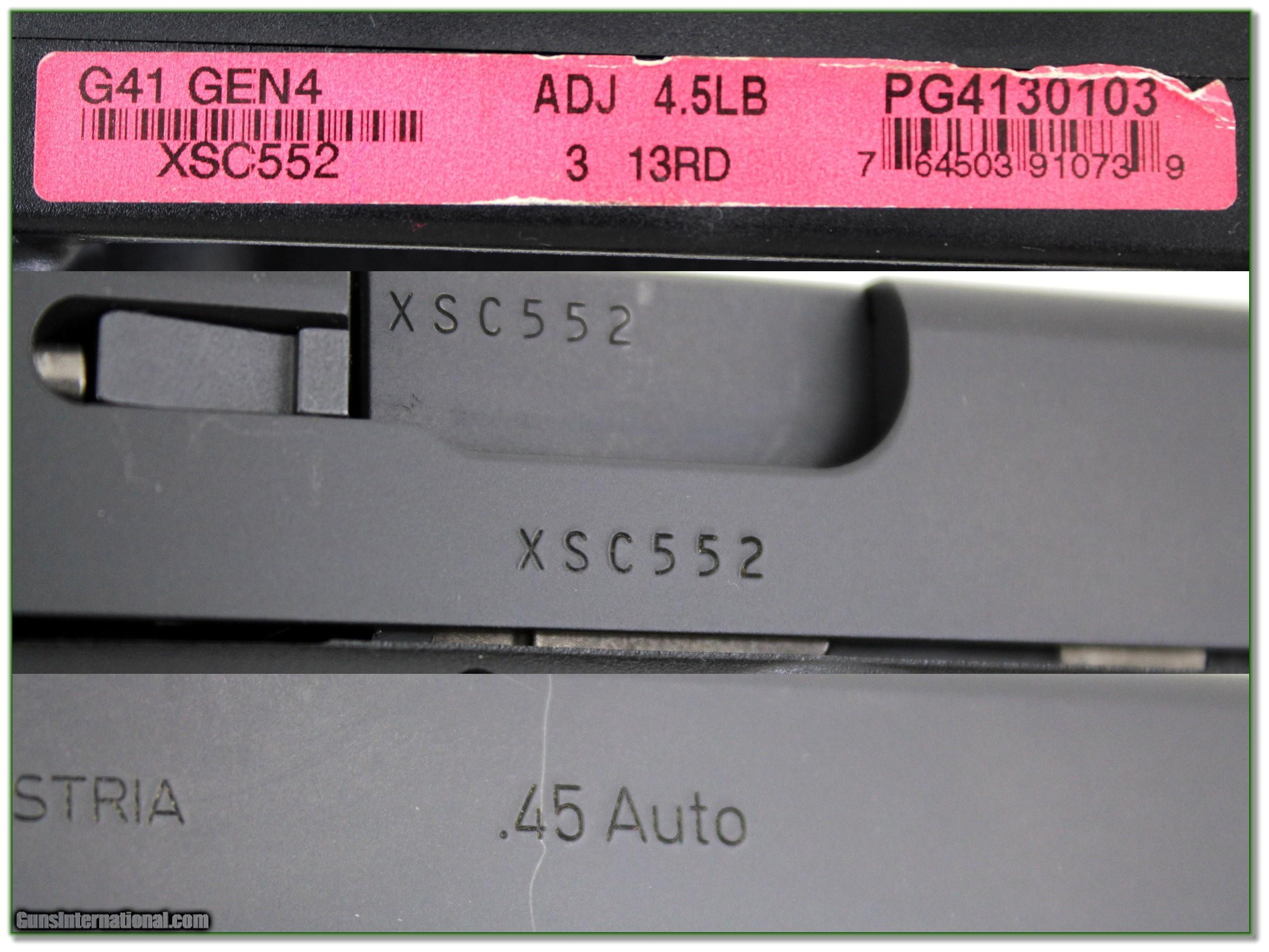 Description: This is a Glock 41 Gen 4 45 ACP. It is in excellent condition and comes as seen in factory case with grip extensions and papers. I am selling this one on consignment and as such lay-a-way can’t be used. It does of course have the standard 3-day inspection. Shipping and insurance is $39. Please email me with any questions or larger pictures. (Consign your quality firearms with Shooting Investments for only 12%! Let me know if you have any you would like to sell!) 23-0123 Payment: Payment is by Money Order, Cashier’s Check or Personal Check. I can now also accept Credit Cards (MasterCard, Visa, Discover & American Express) with a 3% convenience fee. Shipping: The shipping charge will be listed in each description. It is $49 for most firearms. Some heavy guns or those insured for over $2000 will be higher. Shipments to Alaska and Hawaii are higher because air shipment is required. Most firearms are shipped on Tuesday and Thursday and usually in 5 days of receipt of payment. We package all shipments carefully and insure them. Optics are shipped Priority Mail and most other non-firearm shipments are shipped First Class. Returns: Our return policy is simple. If for any reason you are not pleased with your purchase, you may return your item for a full refund of purchase price. Ammunition cannot be returned. It is important to us that you are happy. Guns cannot be fired or dissembled before returning them and they must be returned in the same condition as received. Notification of a return must occur within 3 days of receipt at your dealer. Shipping, convenience and dealer fees are not refundable and are the responsibility of the buyer. Lay-a-way: If needed, we offer a 60 day lay-a-way option on most firearms. It is 1/3 now, 1/3 in 30 days and 1/3 in 60 days. Lay-a-way firearm sales are final and cannot be returned. If a lay-a-way is not completed the first payment cannot be refunded. Consigning your firearms with Shooting Investments: We will help you get top dollar for your firearms. While most local guns shops charge 20% or more, our fee is only 12% with a minimum of $75. At your local gun shop it might take months to sell. Selling on-line provides instant access to thousands of interested buyers. You won’t find any other on-line dealer willing to sell your firearms for only 12% or listing every gun on 3 separate s. Selling through an House typically costs the seller 15% and the buyer an addition 15% (so 30%) and you have to wait several months to sell and longer to receive funds. If properly priced, we will sell your firearms within a few weeks. Send us an email or give us a call and we’ll explain how easy it is for you to get top dollar. Trading: Trading for us is really just buying your gun to re-sell. If you have a gun you want to trade, please email a picture and we will let you know what we can give for it. You will always get more if we sell it for you on consignment. SOLD |