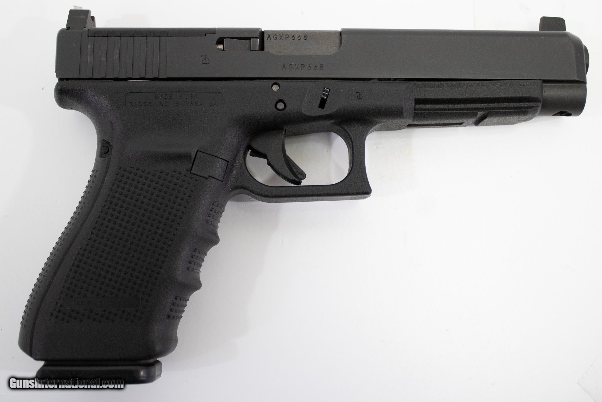 Description: Guns Listing ID: 506157 UPC: 764503005411 Safe Action System This is part of their Competition Series Carbon Steel Barrel 1-15.75” Rate of Twist Black Polymer Rough Textured Frame (RTF) Finger Grooves Accessory Rail Modular Back Strap (MBS) System Carbon Steel Slide Rear Slide Serrations Modular Optics System (MOS) Enlarged Reversible Magazine Catch Suppressor Height Sights Dual Recoil Spring Assembly 13+1 Round Magazine Original Box MSRP: $616.48 SOLD Manufacturer: GLOCK Model: 41 Gen 4 MOS (UG415202MOS) Caliber Info: .45 ACP Condition: Used - Non-Certified Barrels: 5.31 Action: SEMI AUTOMATIC Finish: black matte |