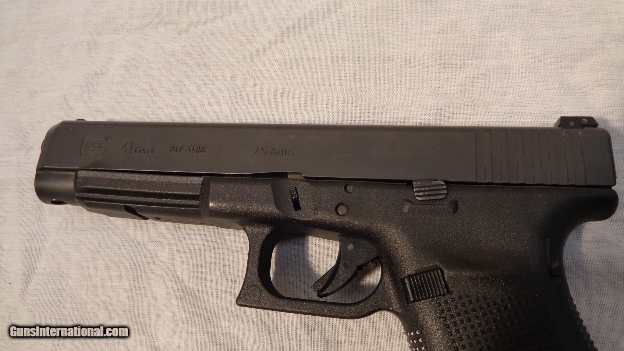 Description: Guns Listing ID: 547710 This Glock is in very good condition showing a little holster wear. The factory hard case and three magazines are included. SOLD Manufacturer: GLOCK Model: 41 GEN 4 Caliber Info: .45 ACP Condition: Used - Non-Certified Barrels: 5.25 BARREL Finish: BLACK |