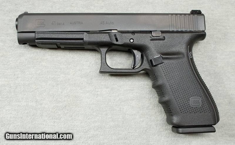 Description: The GLOCK 41 Gen4 is a 45 Auto caliber pistol designed to maximize sight radius while achieving perfect weight distribution and balance. The longer barrel and slide help to reduce muzzle flip and felt recoil whereas the extended sight radius provides better accuracy. The Modular Back Strap system makes it possible to instantly customize its grip to accommodate any hand size. The reversible magazine catch makes it ideal for left and right-handed shooters. This example is new in box. Comes with three magazines. .45 Auto SOLD Barrels: 5.31 inches Weight: 1 LB 8 OZ Item Location: La Vista, NE |
