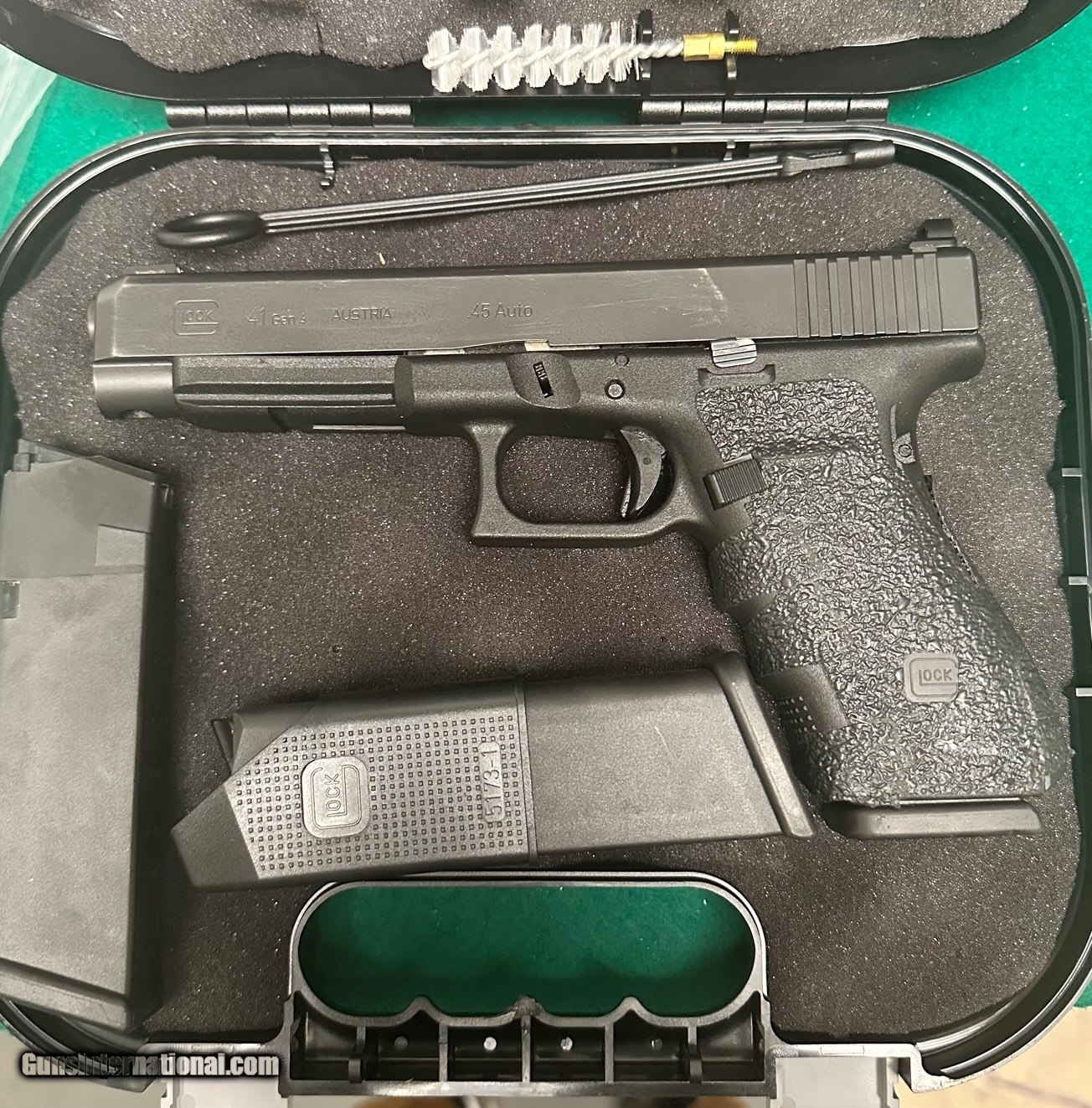 Description: Guns Listing ID: 933192 BOX 3 MAGS HAS RING SIGHT AND TALOM GRIPS SOLD Manufacturer: GLOCK Model: G41 GEN 4 Caliber Info: .45 ACP Condition: Used - Non-Certified Barrels: 5.3 BARREL |