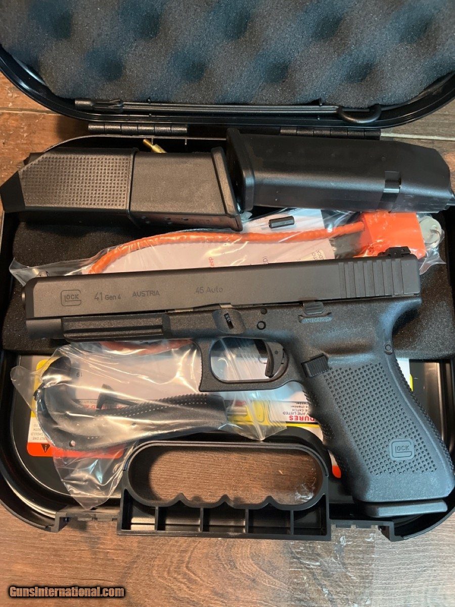 Description: Guns Listing ID: 475368 The Glock 41 Gen 4 is a model of semi-automatic pistol produced by Glock, a renowned Austrian firearms manufacturer. It belongs to Glock‚‚s Gen 4 series, which is an updated version of their earlier models. Here’s a breakdown of what makes the Glock 41 Gen 4 unique: Key Features: Type of Firearm: It is a full-size, .45 ACP caliber pistol, designed for accuracy and control. Generation 4 Features: The Gen 4 series introduced several improvements over previous generations, including: Textured Grip: The grip has a more aggressive texture to help with handling and control. Modular Backstrap System: Users can change the size of the grip by adding or removing backstrap inserts, allowing for a more customized fit. Recoil Spring Assembly: The Gen 4 models feature a dual recoil spring for improved recoil management and durability. Improved Magazine Release: The magazine release is ambidextrous and more easily accessible. Rough Textured Frame: The frame is designed for better traction, especially in wet or slippery conditions. Size and Design: The Glock 41 has a longer slide and barrel (about 5.31 inches or 135 mm in length) compared to the standard Glock pistols, which provides better accuracy at longer distances. It has a full-size frame, making it suitable for competitive shooting, target shooting, and law enforcement. Capacity: It typically comes with 13-round magazines for the .45 ACP caliber. Some versions may offer extended magazines. Accuracy and Use: The longer barrel and slide contribute to greater accuracy and lower recoil, which makes it ideal for competition shooting (such as USPSA or IDPA) and tactical use. Safety Features: Like all Glock pistols, it has three internal safety mechanisms: the trigger safety, firing pin safety, and drop safety. These features ensure the gun will not fire unless the trigger is intentionally pulled. Summary: The Glock 41 Gen 4 is a high-performance .45 ACP pistol that excels in accuracy and control, offering enhanced ergonomics and features typical of the Gen 4 platform. It is suitable for law enforcement, target shooters, and enthusiasts looking for a reliable and accurate full-size pistol. EL SOLD Manufacturer: GLOCK Model: G41 GEN 4 Caliber Info: .45 ACP Condition: Used - Non-Certified Barrels: 5 BARREL Finish: black matte |