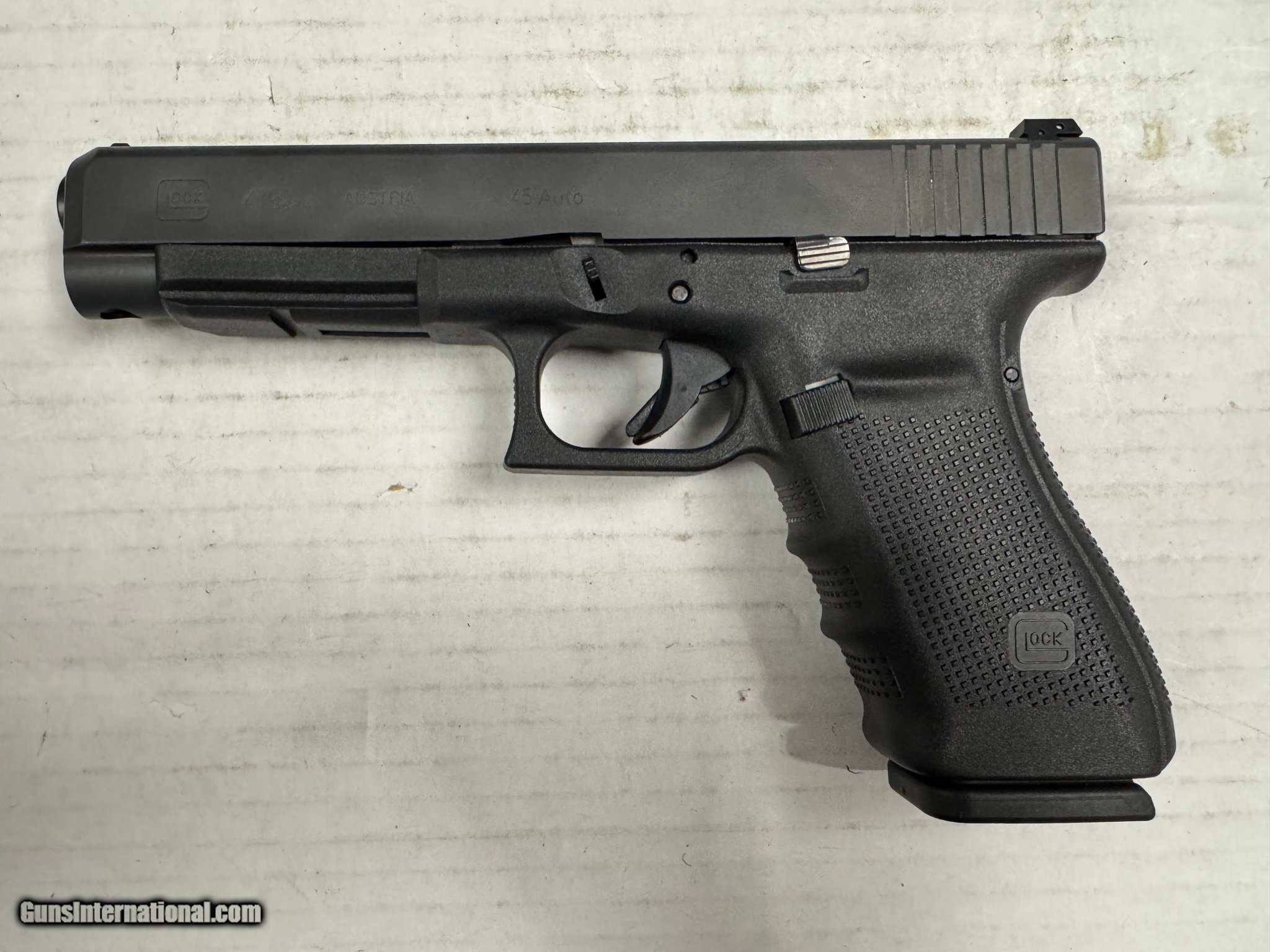 Description: Guns Listing ID: 481946 Glock 41 Gen 4, 45ACP Semi Auto Pistol, 5.31\" Bbl, Adj Sights, 3x13rd Mags, BLK -Firearm is in great condition -Light wear -Comes with original hardcase and all accessories SOLD AS IS SOLD Manufacturer: GLOCK Model: G41 GEN 4 Caliber Info: .45 ACP Condition: Used - Non-Certified Barrels: 5.31 Finish: black |