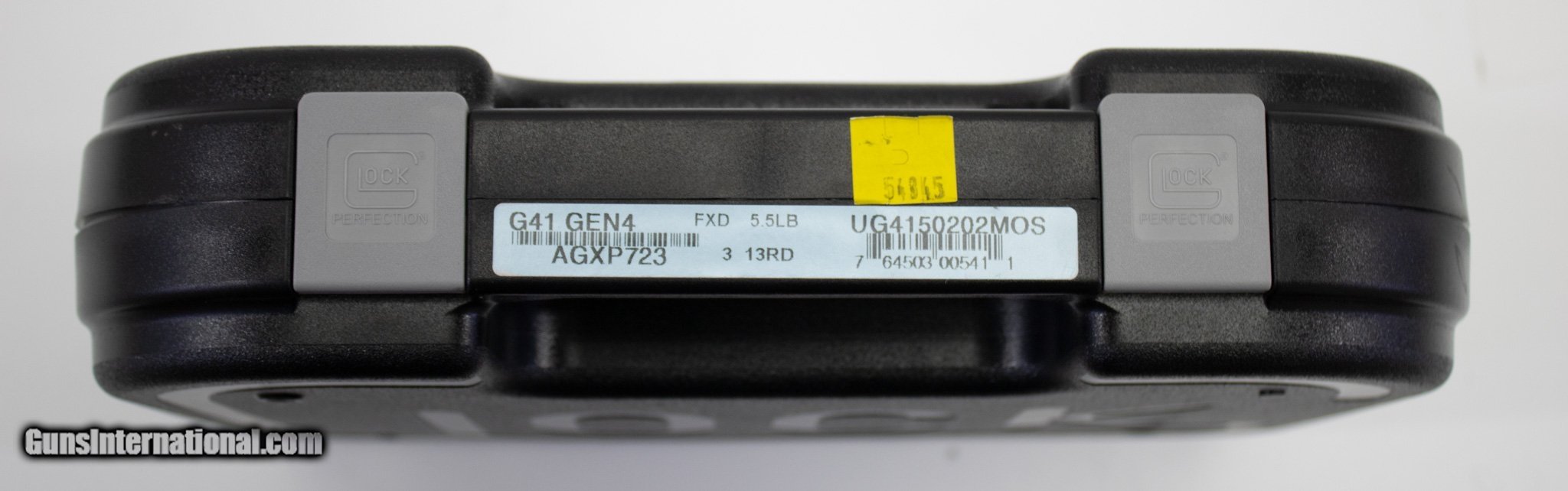Description: Guns Listing ID: 508641 UPC: 764503005411 Safe Action System This is part of their Competition Series Carbon Steel Barrel 1-15.75” Rate of Twist Black Polymer Rough Textured Frame (RTF) Finger Grooves Accessory Rail Modular Back Strap (MBS) System Carbon Steel Slide Rear Slide Serrations Modular Optics System (MOS) Enlarged Reversible Magazine Catch Suppressor Height Sights Dual Recoil Spring Assembly 13+1 Round Magazine Original Box MSRP: $616.48 SOLD Manufacturer: GLOCK Model: G41 Gen 4 MOS Caliber Info: .45 ACP Condition: Used - Non-Certified Barrels: 5.31 Action: SEMI AUTOMATIC Finish: black matte |