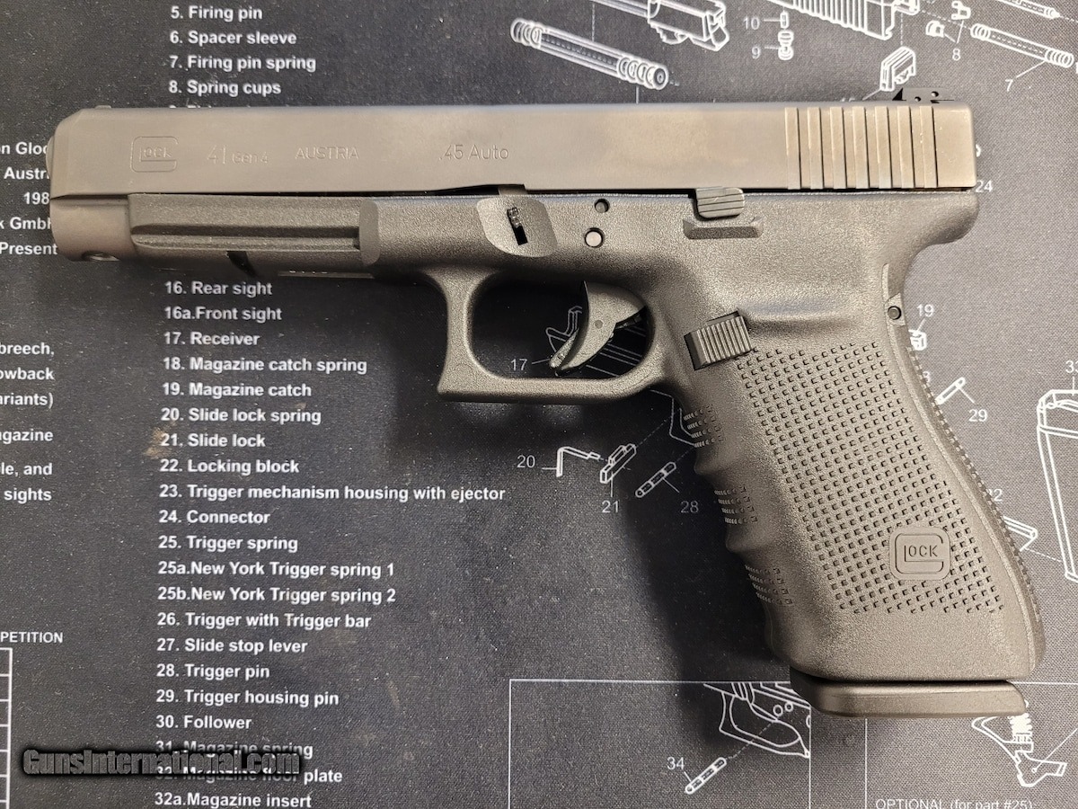 Description: Guns Listing ID: 558981 Unfired display model. Comes with one 13 round magazine. SOLD Manufacturer: GLOCK Model: G41 GEN 4 Caliber Info: .45 ACP Condition: Used - Non-Certified Barrels: 5.3" barrel |