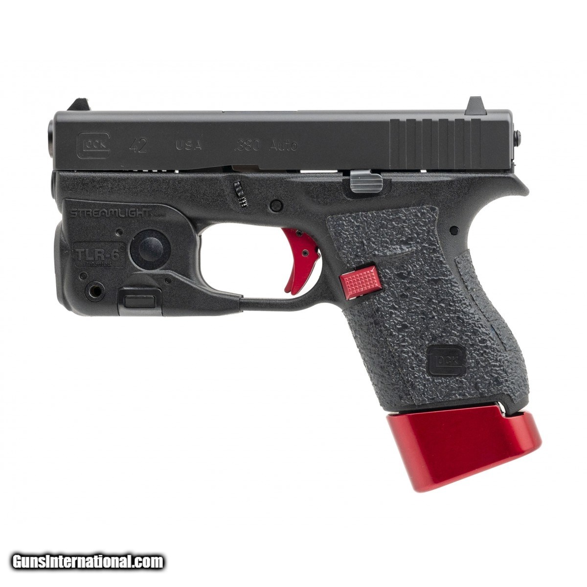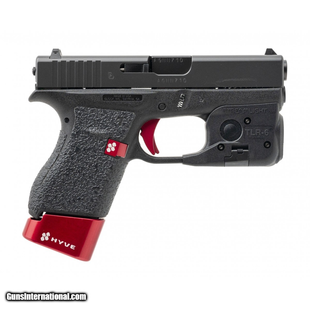 SN: AGNN710. Modern production. .380 ACP with a 3.1" barrel. Bore is very good. Sub-compact Glock. Finish and custom grips are in very good condition. Pistol comes with case. 2 extra magazines, TLR-6, and custom trigger. Overall very good condition.