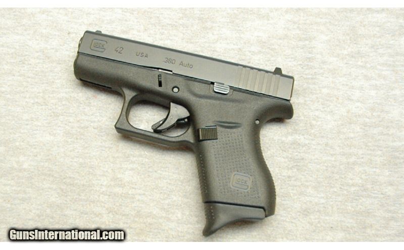 Description: Glock 42 in .380 ACP. This pistol is in near new condition. The action cycles smoothly and the bore and rifling are clean. Includes two magazines and hard case. This would be an excellent choice for a concealed carry firearm. .380 ACP SOLD Chambers: .380 ACP Metal Condition: Excellent Bore Condition: Bright Barrels: 3 Inch Triggers: Factory Butt Pad: Textured Hand Grip Sights: Fixed With White Detail Item Location: La Vista, NE |