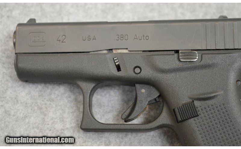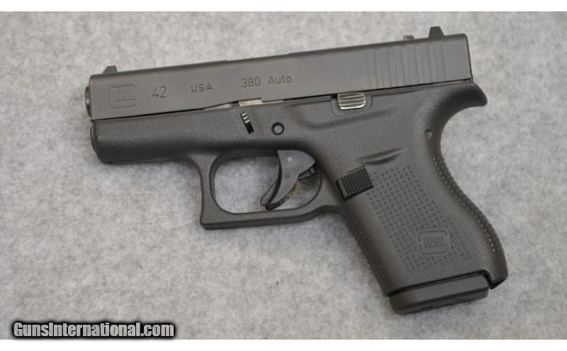 Description: This Glock 42 is in excellent condition it has a 3" barrel and comes with one 6 round magazine. For those discerning shooters who desired the smallest GLOCK possible, the company responded with the now popular G42 in 380 AUTO with ultra-compact dimensions and easy-to-shoot characteristics. The G42 packs all the features GLOCK customers have come to appreciate - from the GLOCK SAFE ACTION system with its multiple integrated safety features to the brand's proven reliability and durability. .380 ACP SOLD Chambers: 380 ACP Metal Condition: Excellent Bore Condition: Excellent Barrels: 3" barrel Weight: 0.90 lb. Sights: Painted iron sights Item Location: Huntsville, AL |