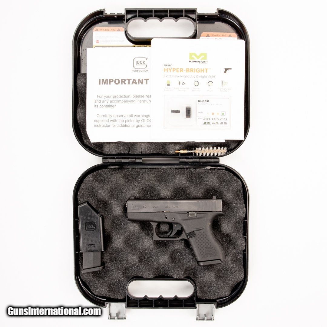 Description: Guns Listing ID: 375166 This Glock features two 6-round magazines, the original case, owner‚‚s manual, a magazine loader and Meprolight Hyperbright day/night sights. Get the best bang for your buck when you get a Certified Used Firearm . When you see the Certified Used stamp on any of our firearms, you can be confident that you’re getting exactly what you want – a gun only in very good to excellent condition and held to the highest quality standard. All Certified Used Guns come with a ‘no questions asked’ return policy . PLUS, ALL CERTIFIED USED GUNS SHIP FREE! SOLD Manufacturer: GLOCK Model: 42 Caliber Info: .380 ACP Condition: Used - Certified Barrels: 3.1 BARREL Finish: BLACK Weight: 0.8 LBS. |
