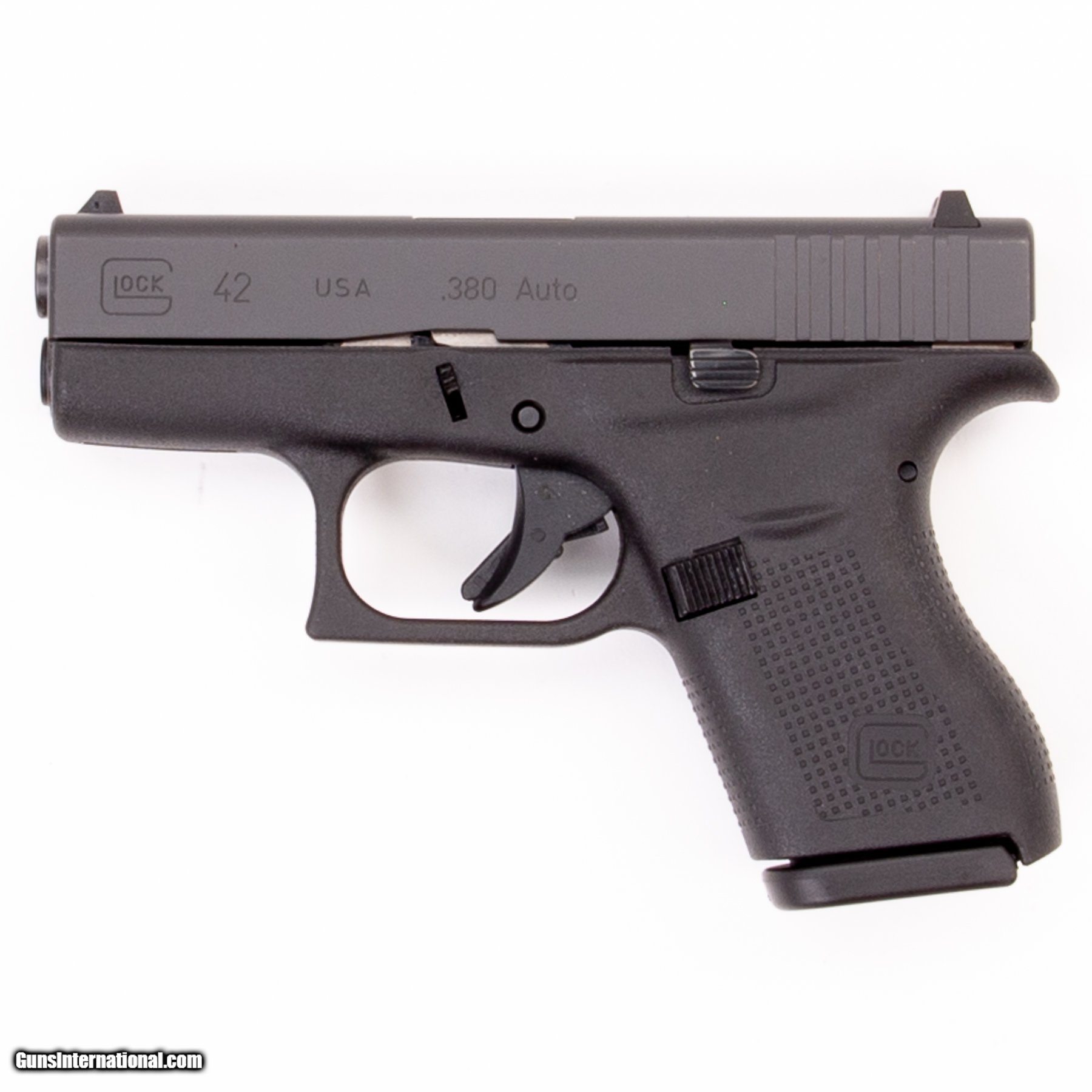 Description: Guns Listing ID: 404102 This Glock 42 features two 6-round magazines, the original case, owner‚‚s manual and a magazine loader. Get the best bang for your buck when you get a Certified Used Firearm . When you see the Certified Used stamp on any of our firearms, you can be confident that you’re getting exactly what you want – a gun only in very good to excellent condition and held to the highest quality standard. All Certified Used Guns come with a ‘no questions asked’ return policy . PLUS, ALL CERTIFIED USED GUNS SHIP FREE! SOLD Manufacturer: GLOCK Model: 42 Caliber Info: .380 ACP Condition: Used - Certified Barrels: 3.2 BARREL Finish: BLACK Weight: 1 lbs. |