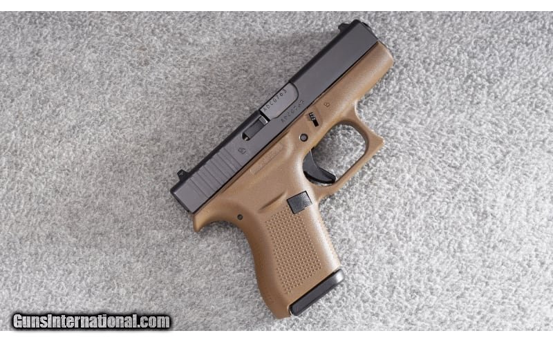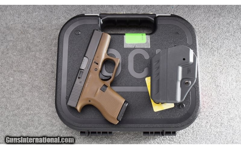 Description: This Glock Model 42 in .308 ACP is in excellent condition. It features a flat dark earth (FDE) polymer frame. It will ship in the original Glock box along with one (1) magazine and a Blackhawk belt holster. .380 ACP SOLD Metal Condition: Excellent Bore Condition: Excellent Barrels: 3 Triggers: Factory Glock Trigger Butt Pad: Textured FDE Polymer Grip Weight: 14 Oz Sights: Standard Glock Style Sights Item Location: Wheeling |