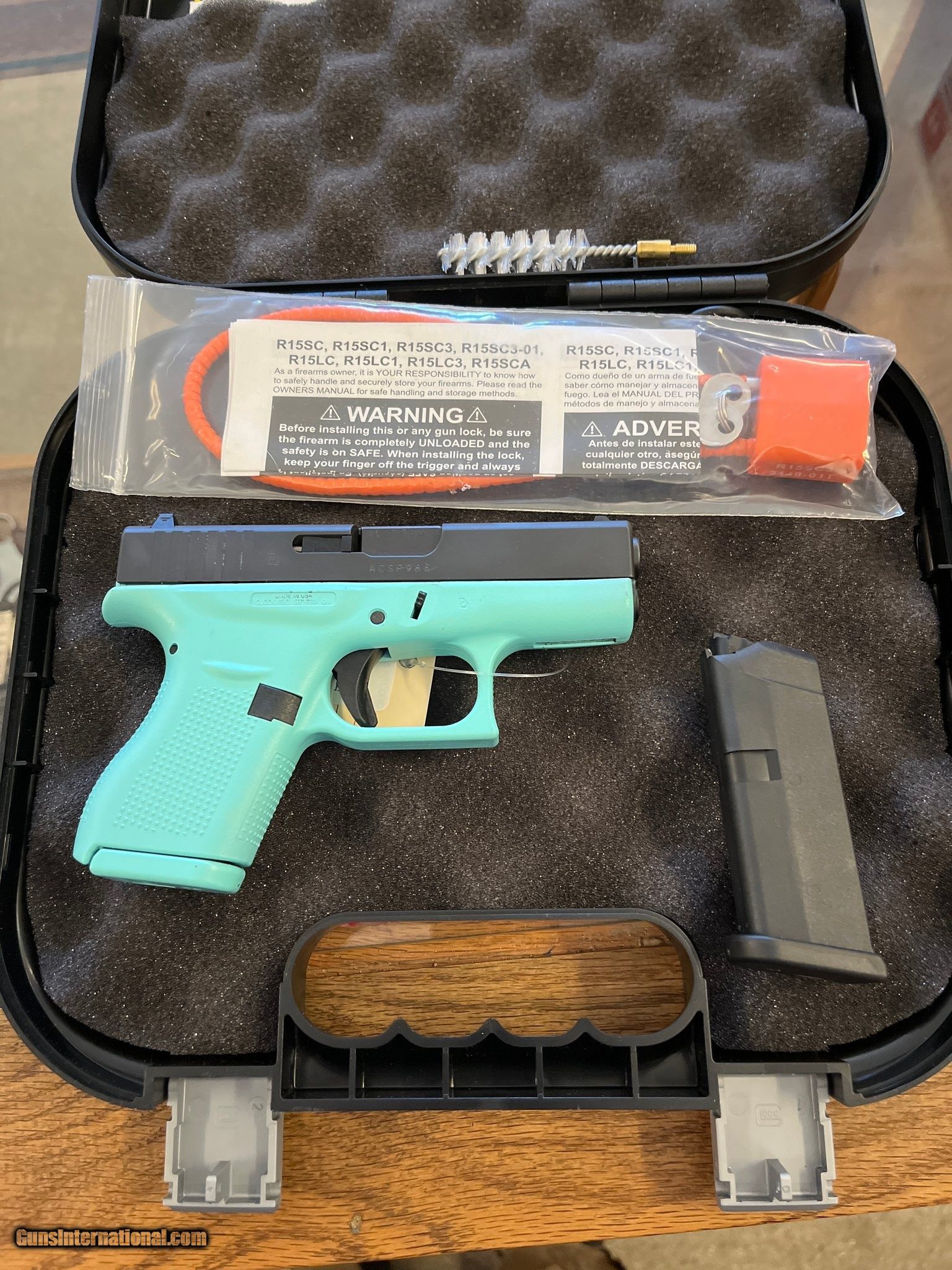 Description: Guns Listing ID: 580942 Glock model 42 380 semi auto. Robin egg blue. Gun in factory box in excellent condition. Manufacturer: GLOCK Model: 42 Caliber Info: .380 ACP Condition: Used - Non-Certified Barrels: 3.25" BARREL Action: SEMI AUTOMATIC Finish: ROBIN‚‚S EGG BLU Price: $375.99 Contact Seller |