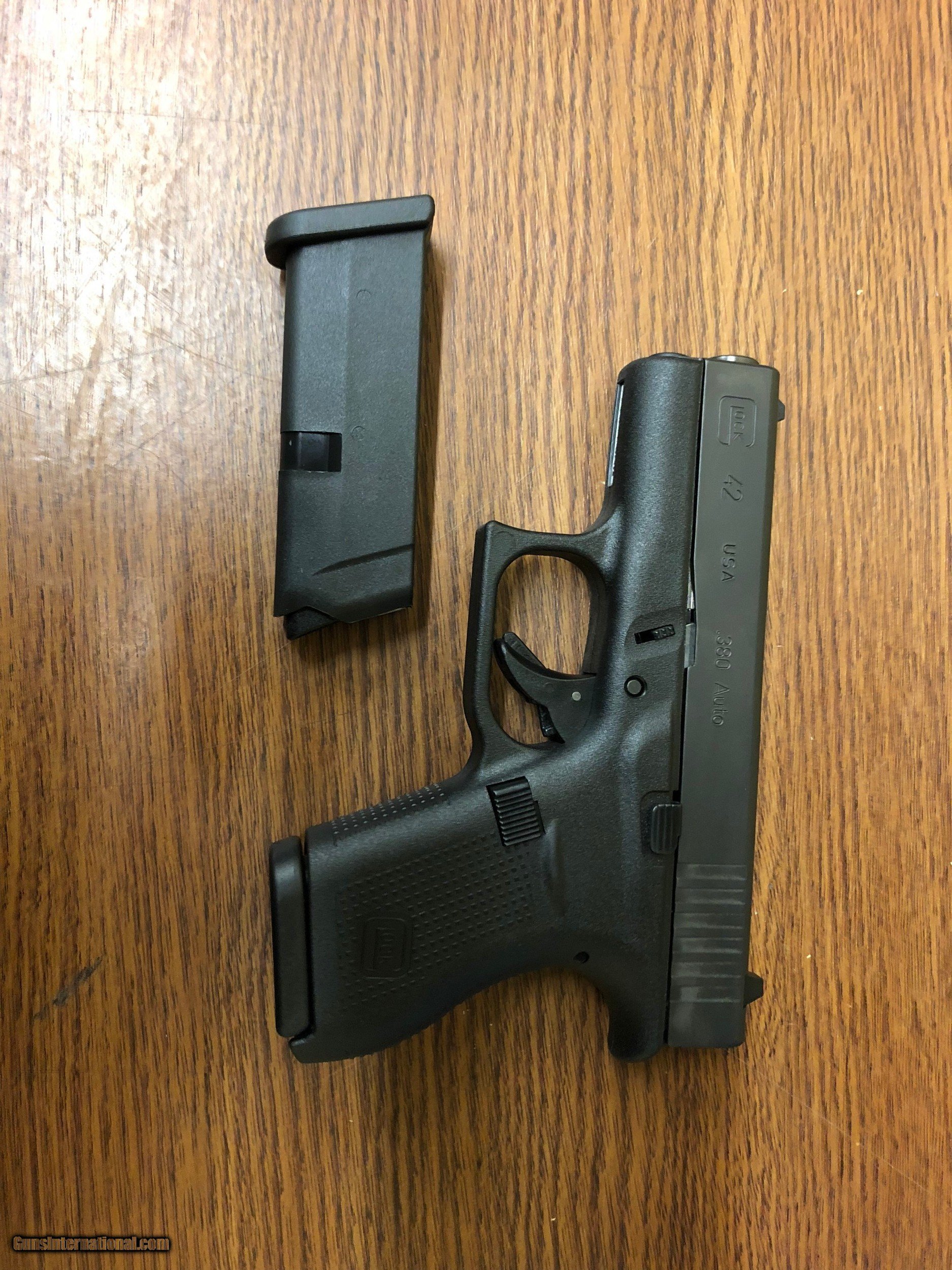 Description: USED, IN GOOD CONDITION Glock 42 Slimline Subcompact Pistol UI4250201, 380 ACP, 3.25 in, Polymer Grip, Gas Nitride Black Finish, 6 Rd W/ Extra Factory Flush Magazine ****PLEASE CALL IN THE WITH THE SELLER’S INVENTORY NUMBER IF INQUIRING ABOUT A FIREARM****** WE DO NOT SHIP FIREARMS AND/OR FIREARMS’ PARTS OUT OF THE 50 UNITED STATES, SO DON’T ASK PRICE REFLECTS PAYMENT BY MONEY ORDER / CASHIERS CHECK. A 3% PREMIUM IS ADDED FOR CREDIT CARDS. WE DO ACCEPT PERSONAL OR BUSINESS CHECKS, BUT THERE IS A 10 DAY GRACE PERIOD ON THEM. Shipping is $40 for handgun and $30 for long gun. Shipping to Alaska and Hawaii will be more based on weight of firearm. WE DO OFFER A LAYAWAY PLAN. YOU CAN LAYAWAY FOR 30, 60, OR 90 DAYS. THERE IS A $5.00 CHARGE FOR EVERY 30 DAYS ITEM IS ON LAYAWAY. WE ALSO REQUIRE A 20% DOWN PAYMENT ON LAYAWAY ITEM. LAYAWAYS ARE NON REFUNDABLE. HERE IS HOW THIS PROCESS WORKS. YOU WOULD CALL US AT 540-337-9218 WITH LISTER # TO PURCHASE THE GUN. THEN ONCE I HAVE RECEIVED PAYMENT AND AN FFL (FEDERAL FIREARMS LICENSE) FROM A LICENSED DEALER IN YOUR AREA OF YOUR CHOICE. WE WILL THEN SHIP THE GUN TO THEM. YOU WOULD THEN PICK UP THE GUN AT YOUR LOCAL DEALER AND DO PAPER WORK THERE. Please have your FFL Dealers contact information when you call. DOMINION OUTDOORS 15 ANGELA COURT FISHERSVILLE ,VA 22939 540-337-9218 540-337-2422 fax M – F 9 to 6 ETZ Sat 9 – 4 ETZ ****PLEASE CALL IN WITH THE SELLER’S INVENTORY NUMBER**** ***PLANO HARD CASES AVAIABLE FOR PURCHASE $19.99 WITH THE PURCHASE OF A FIREARM.** SOLD |