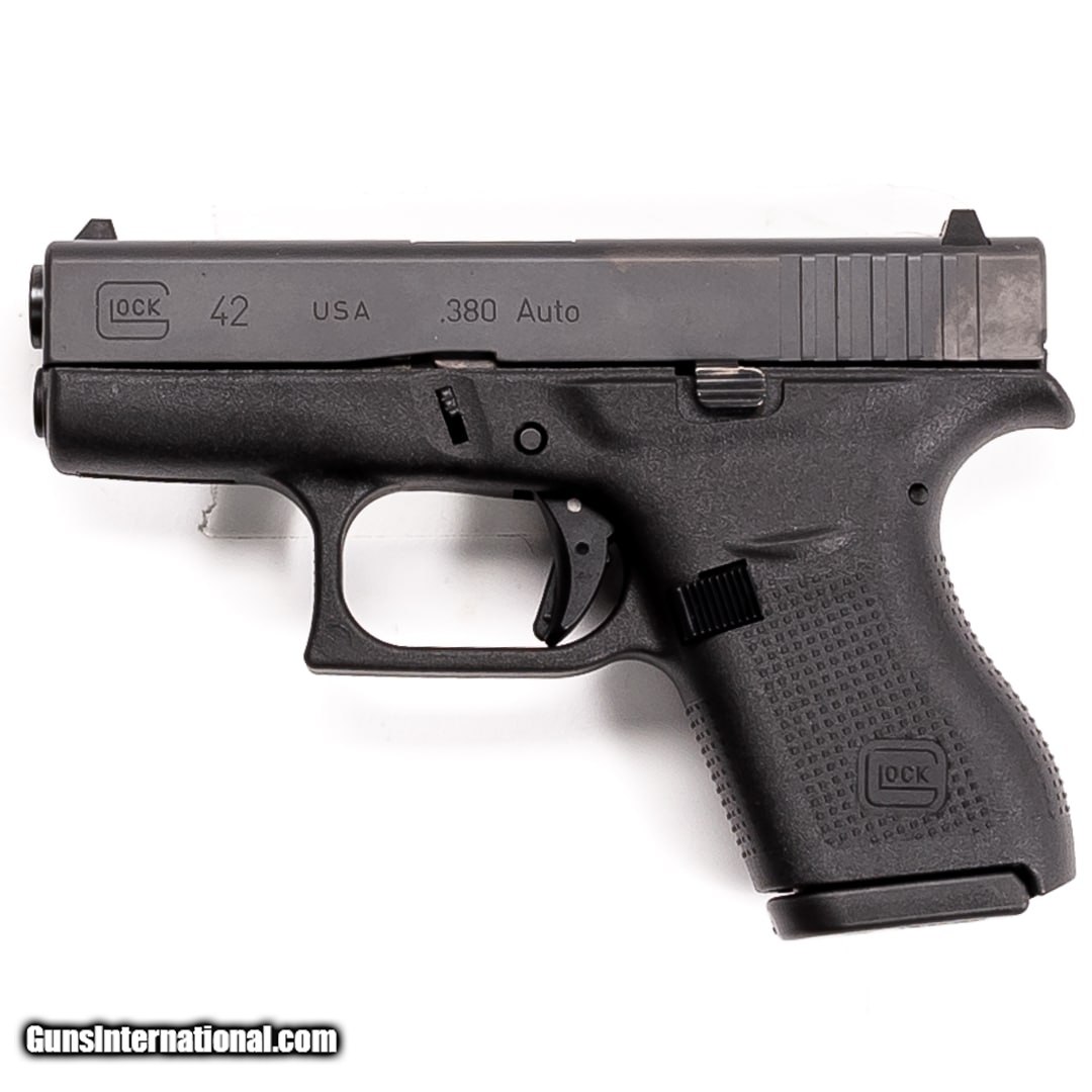 Description: Guns Listing ID: 265298 Made to be ultra-concealable, this Glock G42 is chambered in 380 ACP and designed in response to customer requests. This polymer-framed pistol utilizes a single stack magazine for a more compact design and weighs just over a pound when loaded. Plus, it has Glock‚‚s signature safe action trigger for a better shooting experience. This Glock 42 is in excellent condition and comes with the original case, manual, two 6-round magazines, and a loader SOLD Manufacturer: GLOCK Model: 42 Caliber Info: .380 ACP Condition: Used - Certified Barrels: 3.3 BARREL Finish: BLACK |