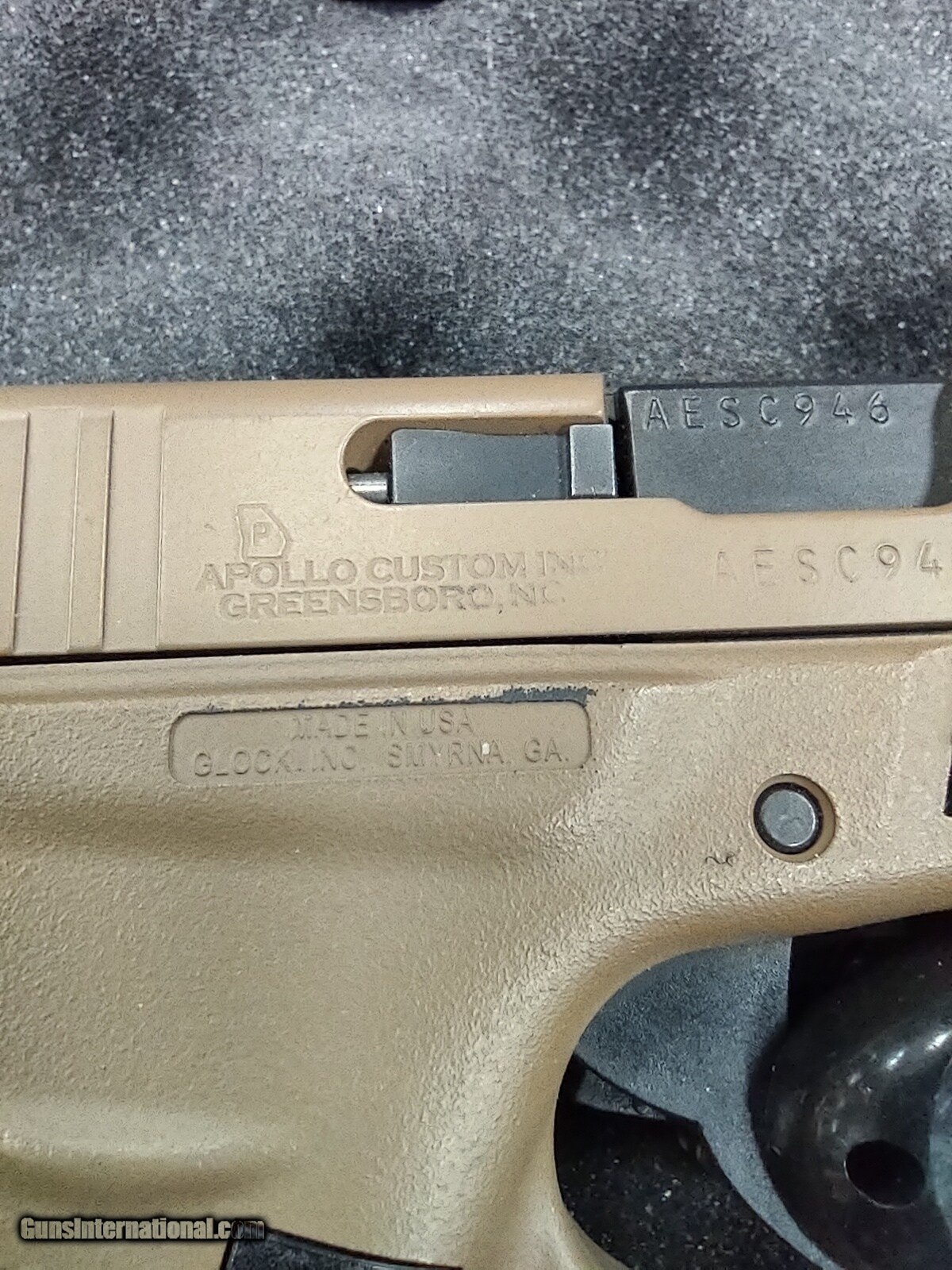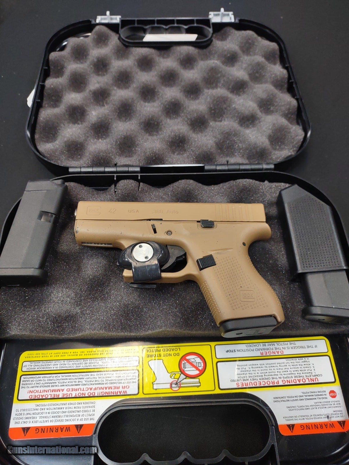 Description: Guns Listing ID: 541447 Matte coyote brown .380 from Glock, inc. Made in the USA. Giving a 8/10 rating as there‚‚s some scratches on the finish otherwise in very good condition. Comes with 2 extra mags in the original case. (G-21038830-1 SOLD Manufacturer: GLOCK Model: 42 Caliber Info: .380 ACP Condition: Used - Non-Certified Barrels: 2.5 BARREL Finish: COYOTE BROWN |