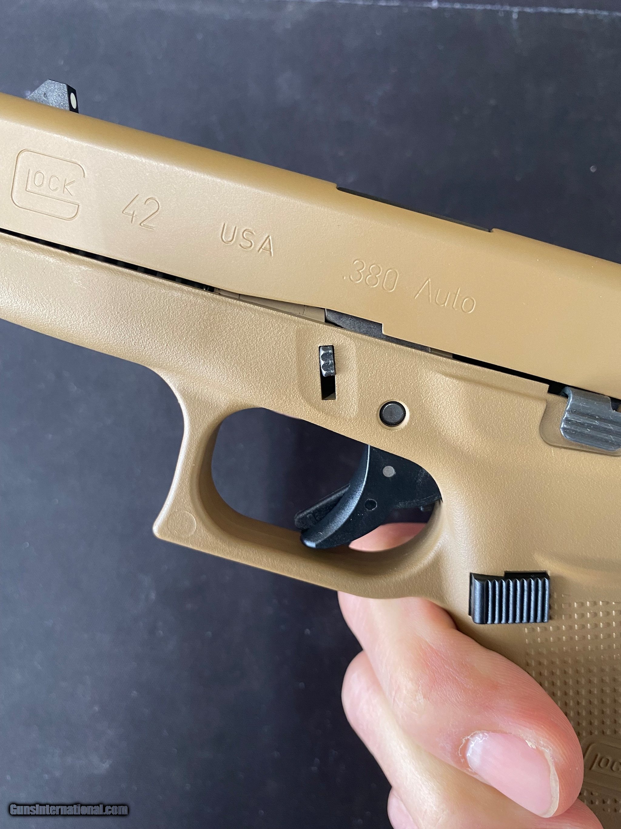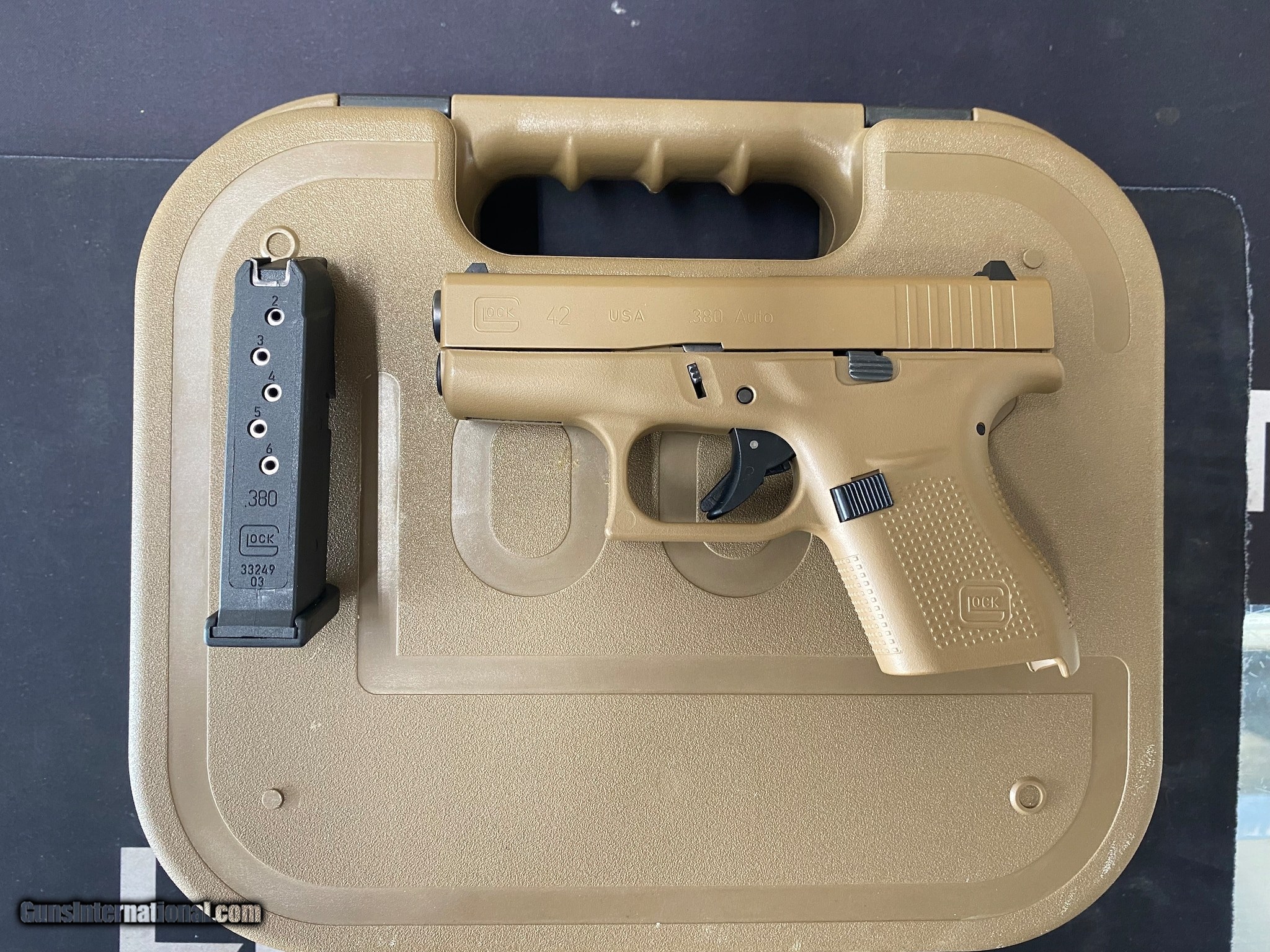 Description: Guns Listing ID: 614918 ***PRE-OWNED/ IN EXCELLENT CONDITION*** . GLOCK 42, .380 CAL, SEMI-AUTO PISTOL, DESERT TAN, COYOTE TAN COLOR COMES IN HARD CASE WITH ONE 6 ROUND MAGAZINE AND FAST/QUICK LOADER. . SEE ALL PHOTOS . \"ALL FIREARMS ARE INSPECTED BY A CERTIFIED GUNS-SMITH\" (G-2007612-1) SOLD Manufacturer: GLOCK Model: 42 Caliber Info: .380 Condition: Used - Non-Certified Barrels: 3 BARREL Finish: DESERT TAN |