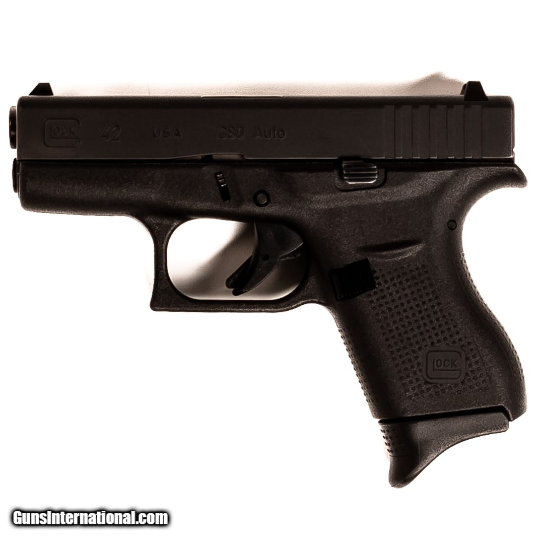 Description: Guns Listing ID: 753241 Made to be ultra-concealable, the Glock G42 is chambered in 380 ACP and designed in response to customer requests. This polymer-framed pistol utilizes a single stack magazine for a more compact design and weighs just over a pound when loaded. Plus, it has Glock‚‚s signature safe action trigger. This G42 includes two 6-round magazines. Get the best bang for your buck when you get a Certified Used Firearm . When you see the Certified Used stamp on any of our firearms, you can be confident that you’re getting exactly what you want – a gun only in very good to excellent condition and held to the highest quality standard. All Certified Used Guns come with a ‘no questions asked’ return policy . PLUS, ALL CERTIFIED USED GUNS SHIP FREE SOLD Manufacturer: GLOCK Model: 42 Caliber Info: .380 ACP Condition: Used - Certified Barrels: 3.2 BARREL Finish: BLACK |