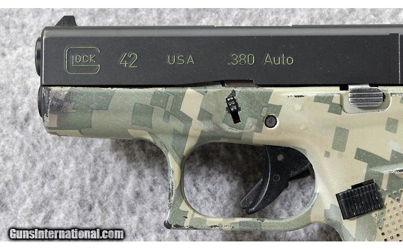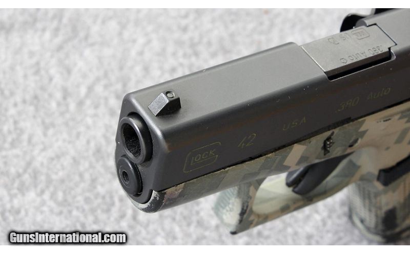 Description: The GLOCK® 42 Semi-Auto Pistol is a slim, subcompact semi-auto pistol designed specifically for concealed carry. Made with the same materials and quality control as all GLOCK semi-automatic pistols, the G42 is a carry gun you can count on.. Internally, the GLOCK 42 employs the same striker, short-recoil operated, and locked-breech barrel as the larger framed GLOCK pistols, and uses a dual recoil spring assembly as the Gen4 pistols. The Safe-Action trigger system makes shooting in stressed situations infallible. The rough textured polymer grip provides a solid hold, and while quite concealable, it offers shooters enough surface area for ultimate control. The white-dot front sight and the white-bracket rear sight provide rapid acquisition in dim lighting situations. The length, shape, finger rest, and size of the trigger opening are the same as the larger pistols, and the trigger is same size and shape as the smooth-faced triggers used on the Gen4 pistols, making them all familiar to those who already use GLOCK pistols. The GLOCK 42 Semi-Auto Pistol is a reliable, easy to maintain firearm that is perfect for everyday carry. .380 ACP SOLD Bore Condition: Very good Barrels: 3.25 inch barrel Triggers: Striker fire Weight: 15 oz. Sights: Standard Glock white outline rear sight with white dot front Item Location: Lehi, UT |