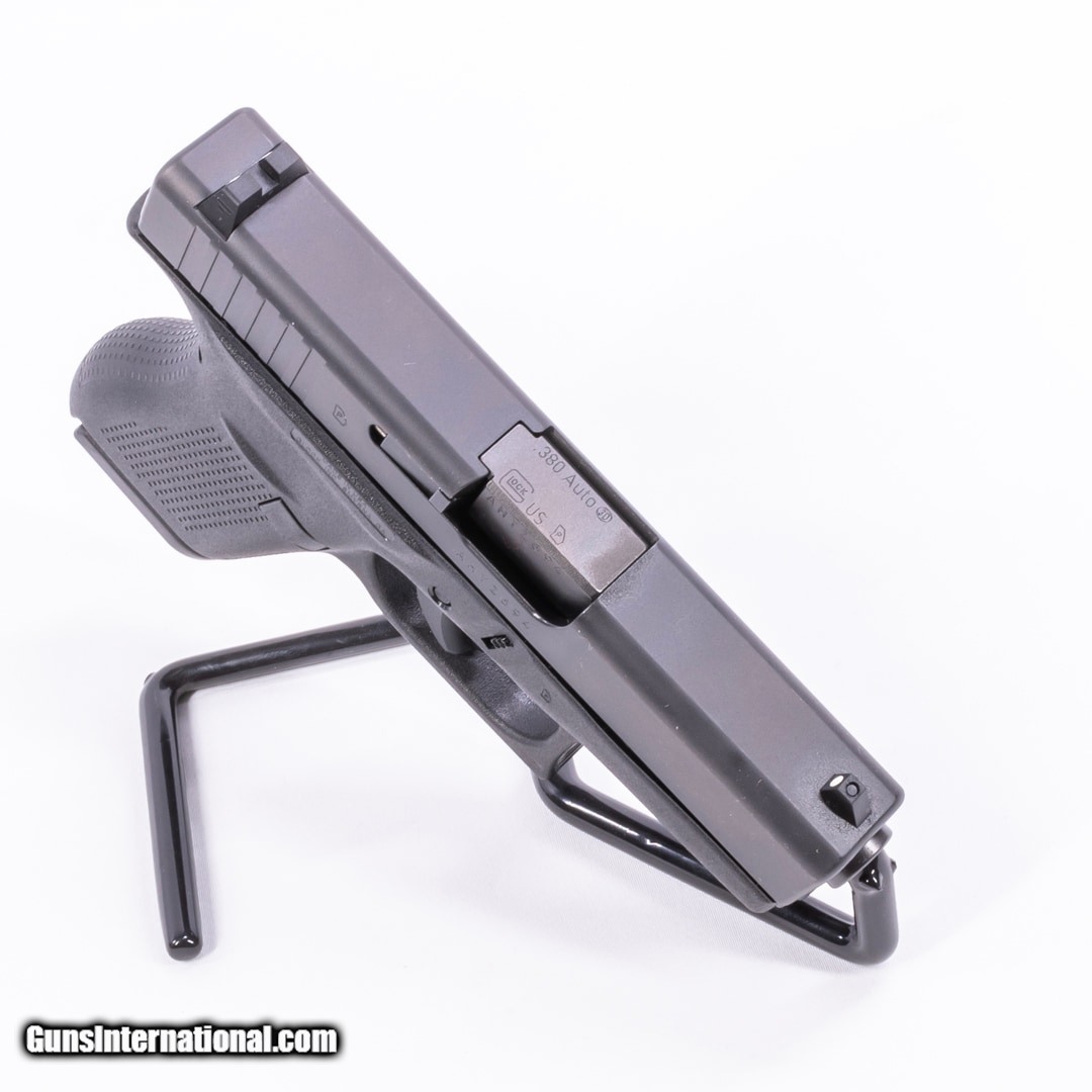 Description: Guns Listing ID: 1102594 Manufacturer: Glock Model: 42 Condition: Excellent Caliber: .380 ACP Action: Striker Fired Barrel Length: 3.25\" Capacity: 6+1 Inventory: Original Box, (4) 6-rd Magazines, speed loader, Trigger Lock UPC: 764503910616 SOLD Manufacturer: GLOCK Model: G42 Caliber Info: .380 ACP Condition: Used - Non-Certified Barrels: 3.25 BARREL |