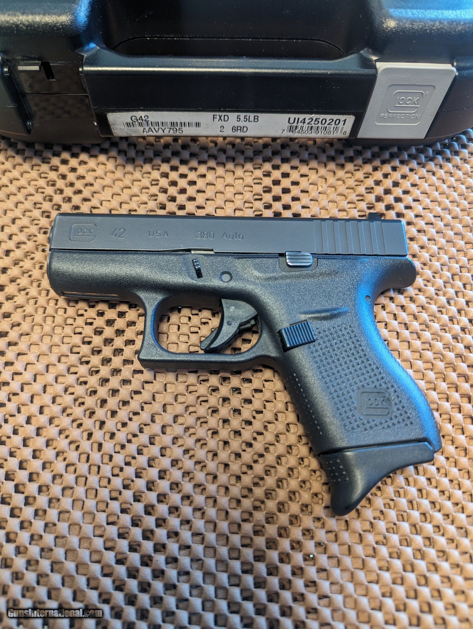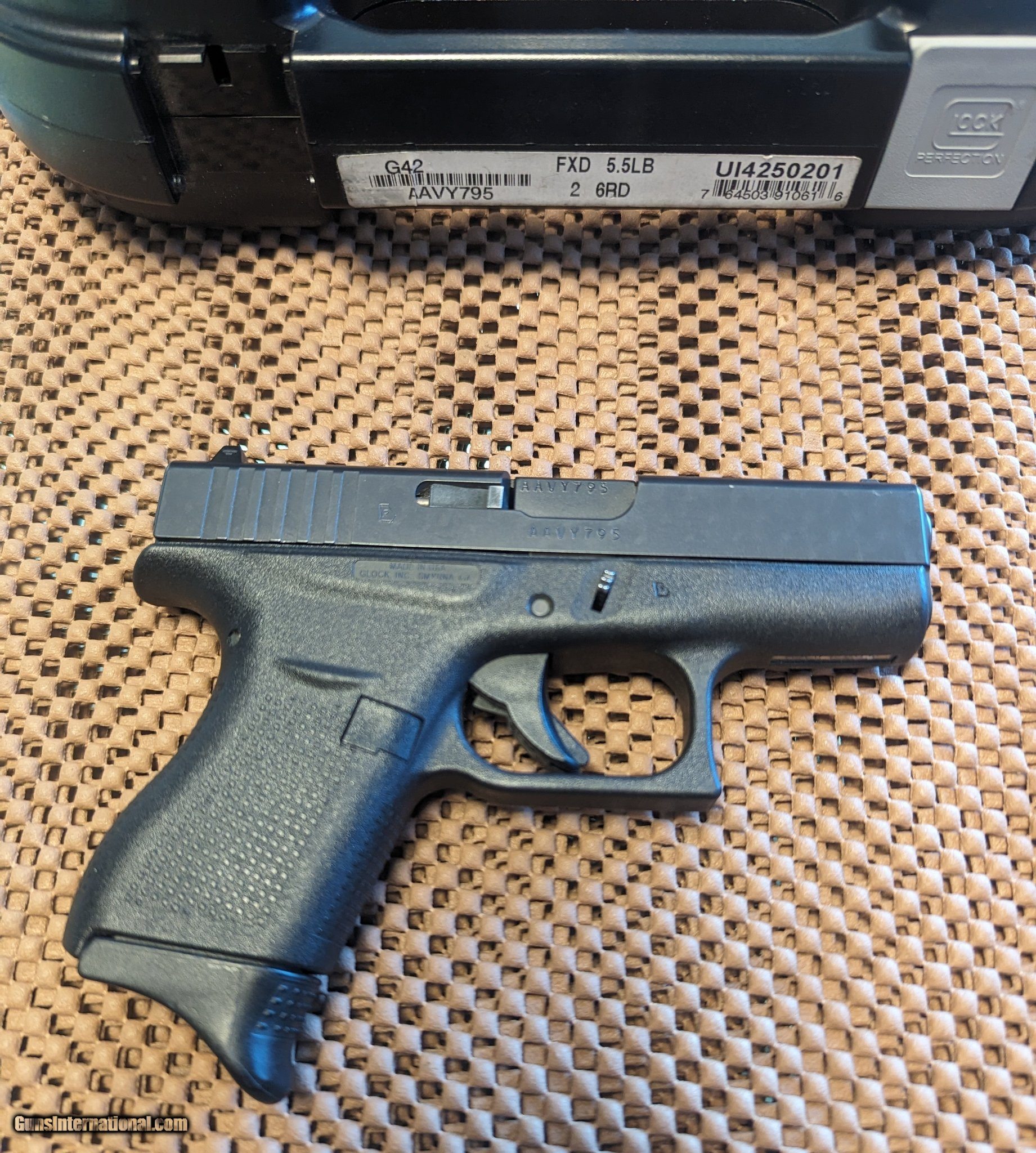 Description: Guns Listing ID: 1299450 GLOCK 42 - G42 380 ACP Sub-Compact 6-Round Pistol is engineered with a caliber of 380 ACP and a compact 6+1 capacity, this pistol boasts a striker-fired action and an overall length of 5.94 inches. Its polymer frame, combined with fixed black textured grips, offers a comfortable yet secure grip. Featuring a serrated matte black steel slide, sub-compact frame size, fixed sights and a firing pin/trigger block safety mechanism. With a slender width of 0.98 inches and a lightweight of 15.87 ounces. Included in the package are 2 magazines and a convenient carry case. SOLD Manufacturer: GLOCK Model: G42 Caliber Info: .380 ACP Condition: Used - Non-Certified Barrels: 3.25 BARREL |