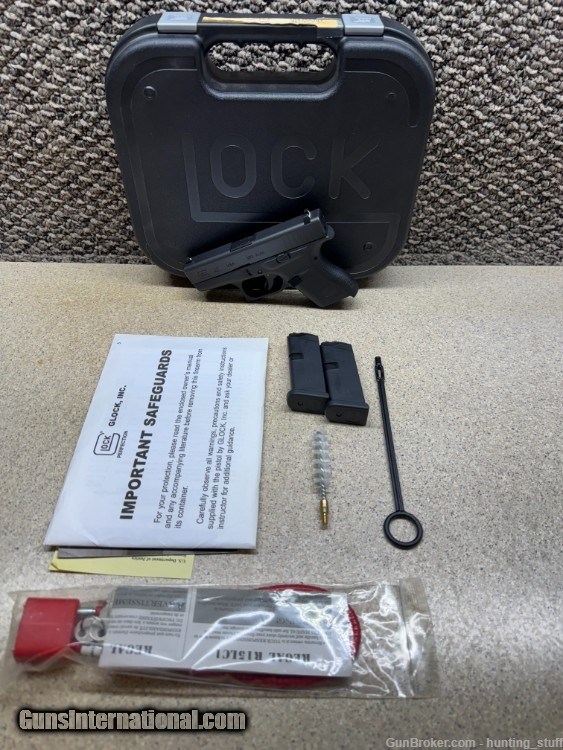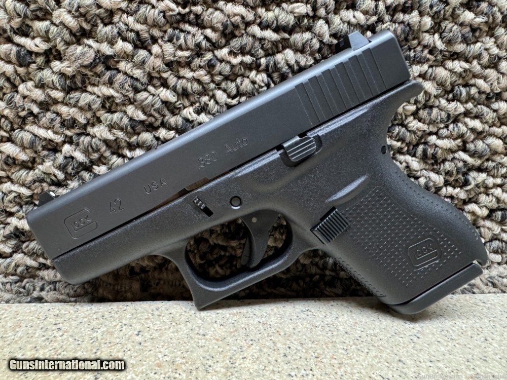 Description: Guns Listing ID: 481711 This listing is for a USED Glock 42 Gen 3 Sub-Compact 380 ACP Black Finish 3.25\" BBL 6+1. This is a used gun, it has been fired and will have residue present. This Glock 42 Gen 3 is chambered in 380 ACP, and it will hold 6 rounds in the magazine. This pistol comes with a 3.25 inch barrel. It comes equipped with a fixed front sight, and a fixed rear sight. Other than a light scratch on the top of the slide next to the barrel, this pistol appears to be in great condition. The action appears to be in good condition, the finish appears to be in good condition, and the bore appears to be in good condition. This pistol comes with two 6 round magazines, a cleaning rod/brush, an owner’s manual, a cable lock, and the hard case. This would be a great concealed carry pistol. ** DISCLAIMER** THIS FIREARM HAS NOT BEEN TEST FIRED*** SOLD Manufacturer: GLOCK Model: G42 Caliber Info: .380 ACP Condition: Used - Non-Certified Barrels: 3.25 BARREL Action: STRIKER Weight: .8 lbs. |