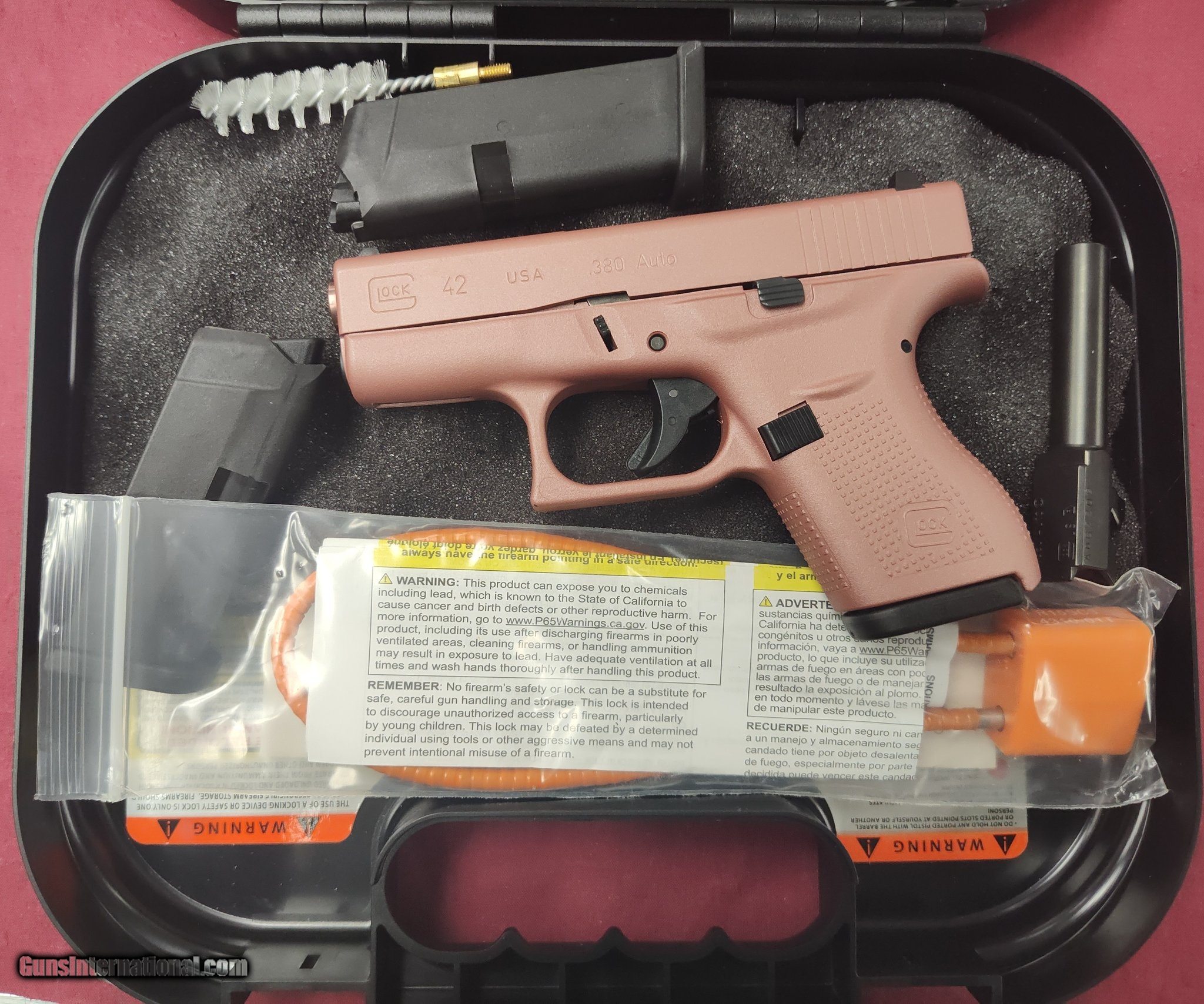 Description: Guns Listing ID: 479902 USED GLOCK 42 PINK CERAKOTE WITHBOX AND BARREL SOLD Manufacturer: GLOCK Model: G42 Condition: Used - Non-Certified Barrels: 3 Gauge Info: .380 ACP Finish: pink |