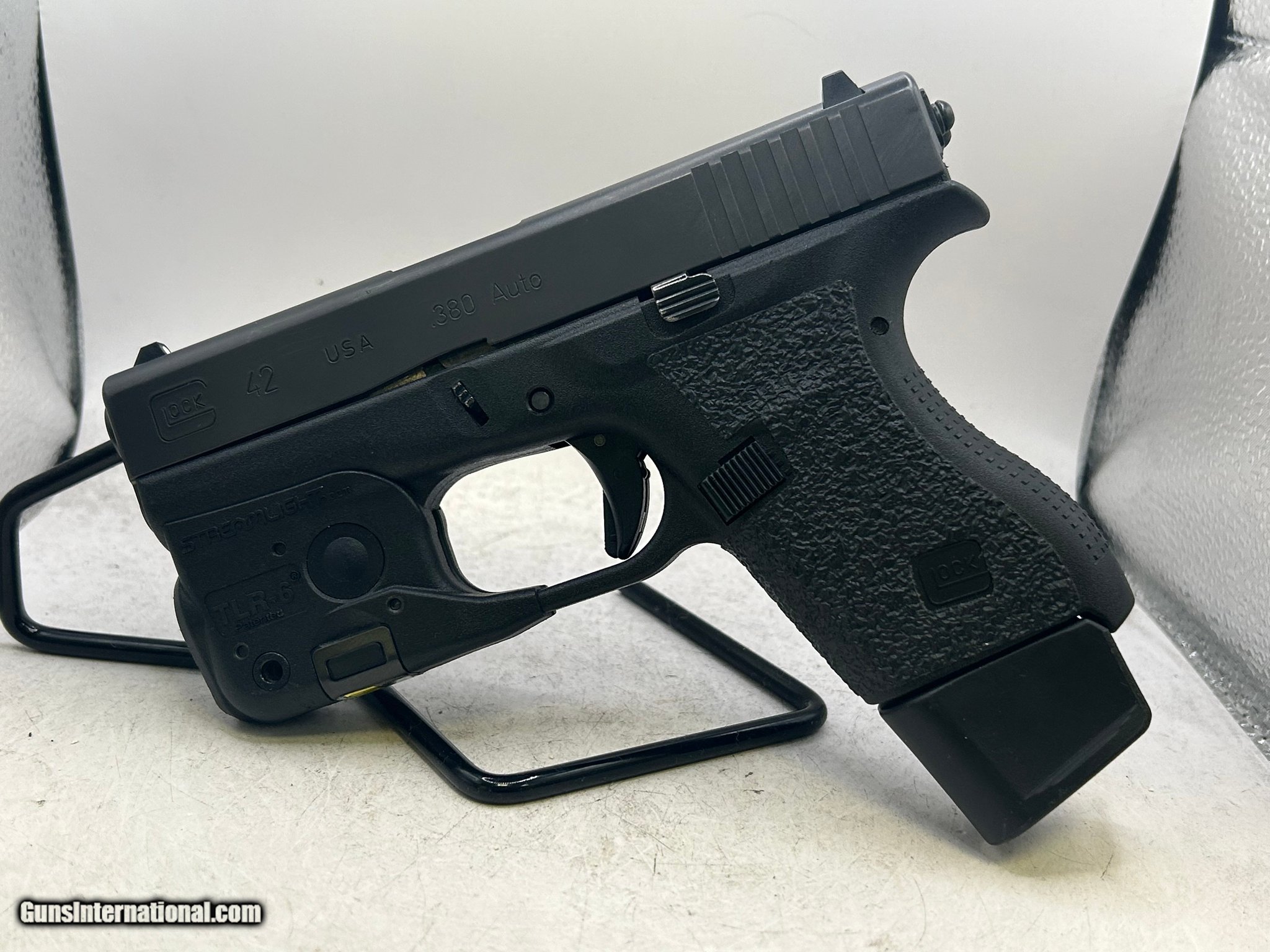 Description: Guns Listing ID: 545641 With slide mounted belt clip, Streamlight TLR-6 flashlight/laser module, one magazine. no box \"vr\ SOLD Manufacturer: GLOCK Model: G42 Caliber Info: .380 ACP Condition: Used - Non-Certified Barrels: 3.25 BARREL Action: SEMI AUTOMATIC Finish: black |