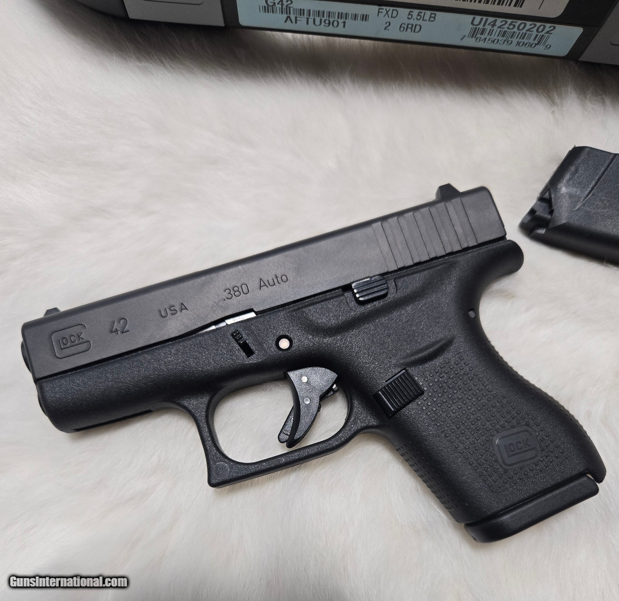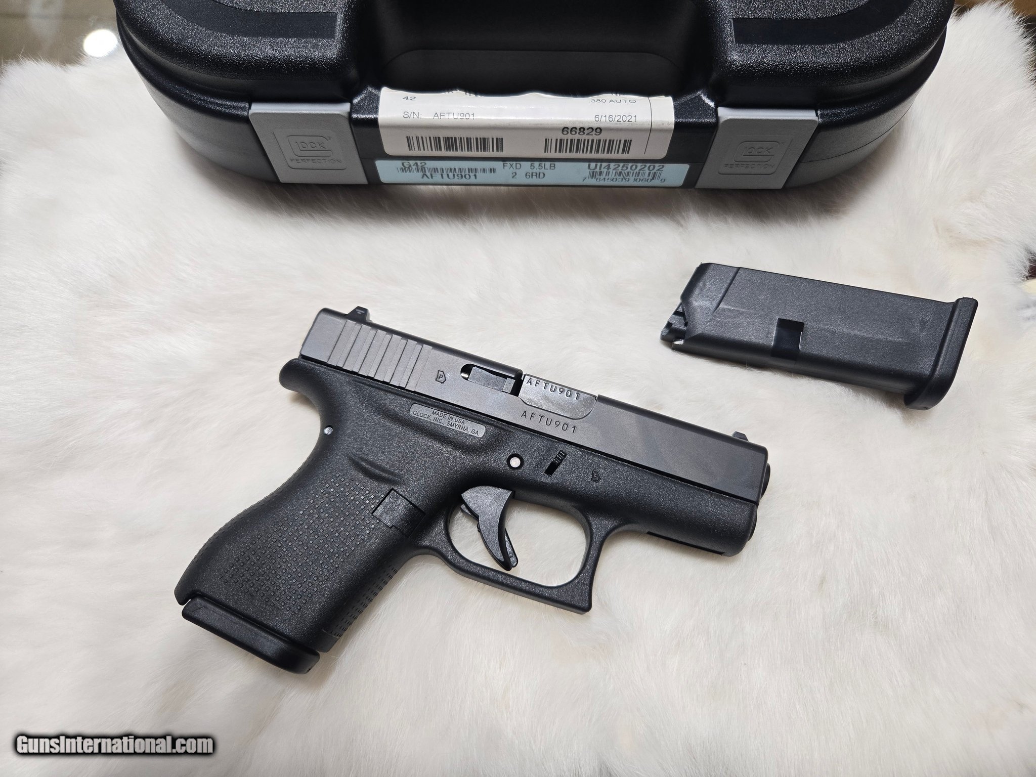 Description: Guns Listing ID: 573634 Used Glock 42 in excellent condition with 2 magazines. SOLD Manufacturer: GLOCK Model: G42 Caliber Info: .380 ACP Condition: Used - Non-Certified Barrels: 3.3" BARREL Action: STRIKER FIRED Weight: 1 LBS. |