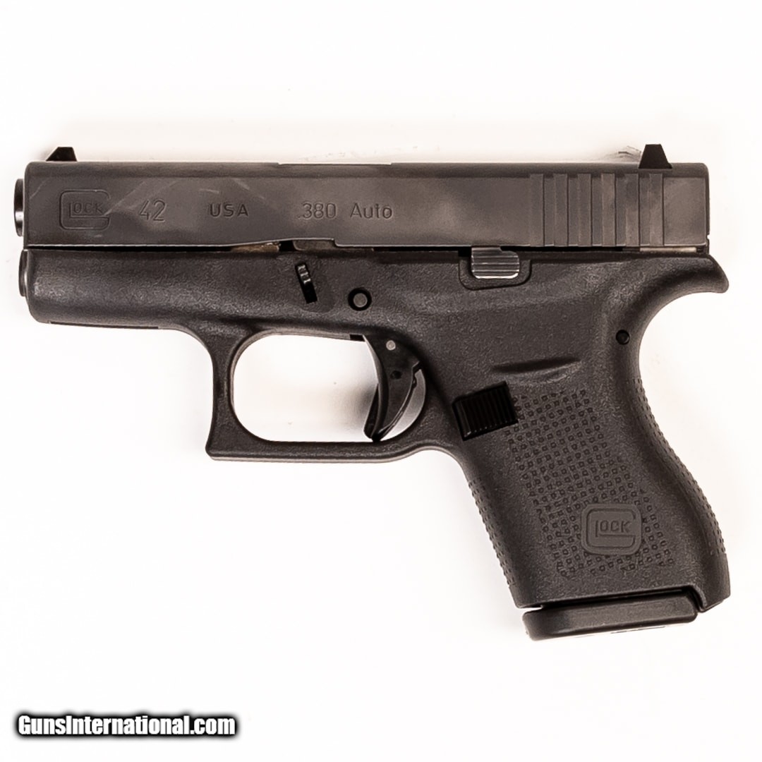 Description: Guns Listing ID: 469302 Made to be ultra-concealable, this Glock G42 is chambered in 380 ACP and designed in response to customer requests. This polymer-framed pistol utilizes a single stack magazine for a more compact design and weighs just over a pound when loaded. Plus, it has Glock‚‚s signature safe action trigger for a better shooting experience. The original case, owner‚‚s manual, and two 6-round magazines are included with this Glock 4 SOLD Manufacturer: GLOCK Model: G42 GEN5 Caliber Info: .380 ACP Condition: Used - Certified Barrels: 3.3 BARREL Finish: BLACK |