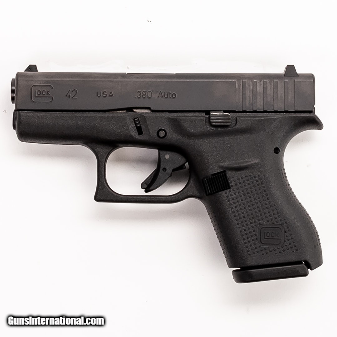 Description: Guns Listing ID: 373262 Made to be ultra-concealable, this Glock G42 is chambered in 380 ACP and designed in response to customer requests. This polymer-framed pistol utilizes a single stack magazine for a more compact design and weighs just over a pound when loaded. This handgun comes with two 6-round magazines and the original case with the manual. SOLD Manufacturer: GLOCK Model: G42 Caliber Info: .380 ACP Condition: Used - Certified Barrels: 32 BARREL Finish: BLACK |